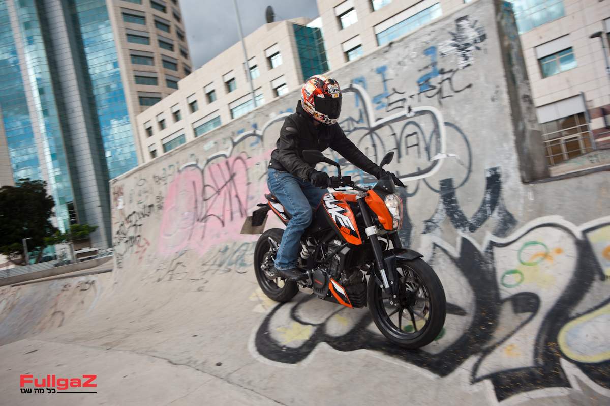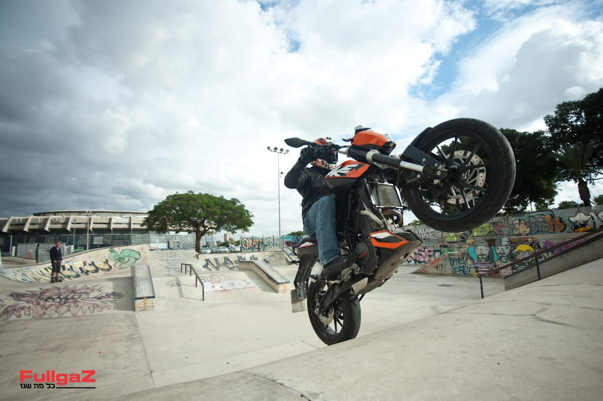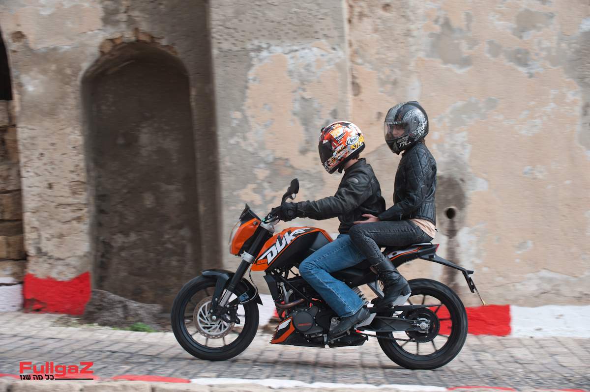 וזה לא שעל הגרמני התאוצות לא היו מרטיבות עיניים, פשוט שעל ה-F3 מה שנרטב זה התחתונים..דכאון. היעד שלנו להיום הוא העליות למבוא חמה – קטע כביש שרק בשבילו היה שווה להתברבר ארבעים שנה במדבר, ואנחנו מתכננים להגיע אליהן דרך כבישים מגניבים ומגוונים בבקעה. הכל טוב ויפה, אבל כרגע אנחנו על כביש 5 הישר והמשמים בואכה שומרון, ואיכשהו אני על הק.ט.מ – מכתיב מהירות זחילה של 140 קמ"ש. הוא קל משקל ויש לו מנוע סינגל שמפמפם כמעט 70 כוחות סוס שיקחו אותו עד בערך 180 קמ"ש, אבל גם תנוחת רכיבה זקופה לחלוטין עם כידון נמוך ורגליות שממוקמות קדימה ולמטה. זה מרגיש קצת כמו לרכב על האסלה המהירה בעולם, ושרירי הבטן הרופסים שלי לא בנויים לזה. לפני שאביעד מסיים להציע שנחליף, אני כבר שוכב רכון על המיכל של ה-F3, מתכנן לעצמי בראש איך להתחמק מהק.ט.מ הספרטני עד שנגיע לקטעים הטכניים ממש, שם ברור לי שאאלץ להשתמש באלימות פיזית מתונה כדי לשכנע את אביעד שיחזיר לי אותו.