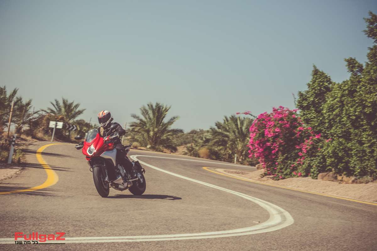 הבעיה התחילה כשהמנוע כילה את הקטעים הישרים והטובים מהר מדי, ואלו התחלפו באספלט מחורץ ומלא מהמורות. ה-MV הוא אופנוע קיצוני בין קיצוניים, ועכשיו אני סובל מזה. תנוחת הרכיבה של אופנועי ספורט אף פעם לא דיברה אל הגוף המאובן שלי, ופה המצב רע במיוחד. המתלים קשים כמו אבן כי ג'וזפה שתכנן אותם מכיר רק מסלולים מפולסים ולא העלה בדעתו שבכלל קיים מקום כמו הבקעה. כל סדק באספלט מורגש, כולל אלה שעוד לא בקעו, ועל הכבישים החלקים התחושה היא שהאופנוע לא מוצא אחיזה בשום מקום, תחושה שהרוכבים על הק.ט.מ והב.מ.וו לא היו שותפים לה.