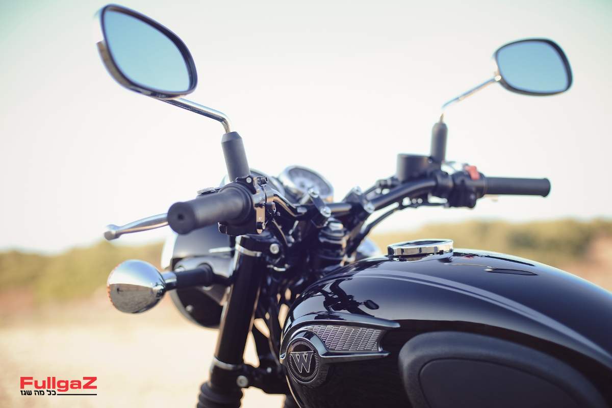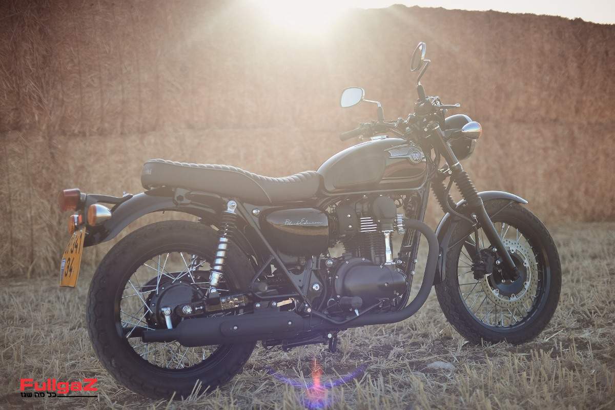 הקוואסאקי W800 ניגש לבמה כביכול מאותה פינה של הגוצי. בשיווי משקל בין חדש לישן הוא נמצא מאוד שמאלה על הסקאלה לכיוון הפרה-היסטורי. זה מתחיל באיך שהוא נראה. כאילו יצא מספר של חסמבה או סצנה באסקימו לימון, במיוחד בשחור שישר הופך את הרוכב עליו לפושטק. ועדיין, למרות בלם התוף מאחור והמראה שמכין את המוח לחוויה אותנטית אסלית של פעם, ברגע שמכניסים לראשון משהו מרגיש קצת מוזר, אפילו טיפה חלבי. יש ויברציות, אבל הן עדינות. המנוע לא מייצר תחושת מומנט כמו בגוצי, אבל האופנוע זז. הכל מאוד פשוט ורגוע ונינוח. אפילו טיפה יותר מדי.