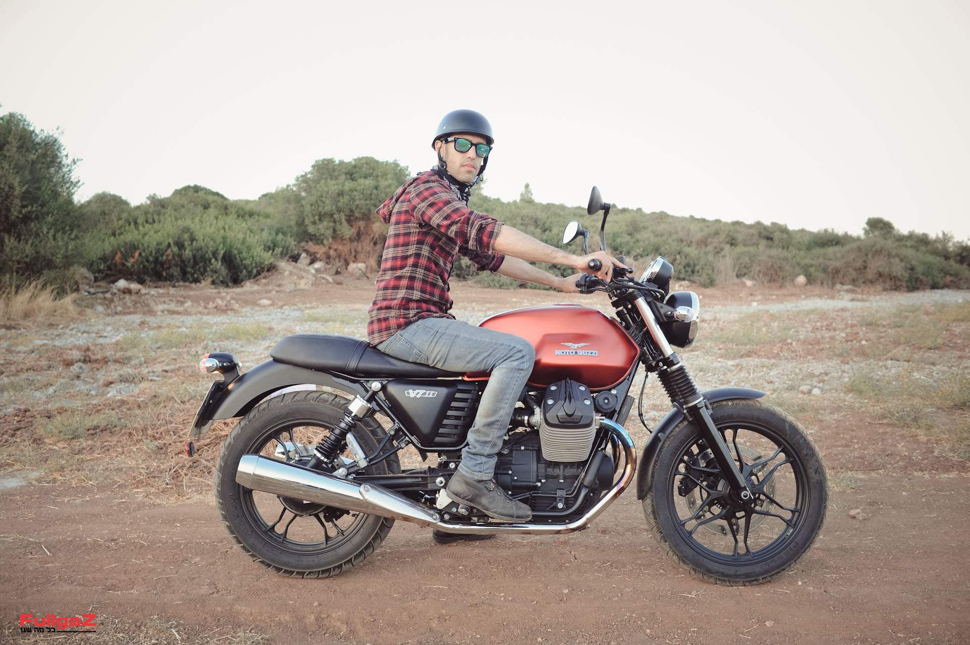 מבחינה מסוימת הוא מרגיש בדיוק כמו שמצפים ממנו להרגיש כשמסתכלים עליו לראשונה. יש לו כריזמה ואופי ונוכחות שקטה אבל כובשת. להגיד שהוא מרגש יהיה להיסחף, אבל הוא מכווץ ומרפה מהלב באופן ייחודי למדי. זה אפילו חמוד שבפיאג'ו החליטו לתת למנוע הווי-טווין הרוחבי מקורר האוויר והארכאי למדי נגיעה של 2016 עם מערכת ABS ומעין בקרת החלקה שנורת החיווי שלה על לוח השעונים נראית כאילו יצאה ממופע שנות השבעים. רק שבמובן מסוים הגוצי הוא מין בולדוג צרפתי. כולם חושבים שהוא חמוד, אבל רק מעטים ירצו להיות ממש בעלים של כזה. איליה, הבעלים של הדוקאטי סקרמבלר שבמבחן, התלבט בין שניהם לפני שבחר באיטלקי מבולוניה על פני זה ממנדלו די לאריו. אחרי שיצא לו לרכב גם על ה-V7, הוא ירד מחויך. שאלתי אותו אם הוא כל כך אהב את הגוצי, והוא ענה שהוא חמוד, אבל זה לא העניין. הוא פשוט שמח על הבחירה שעשה.