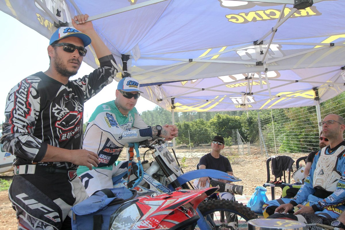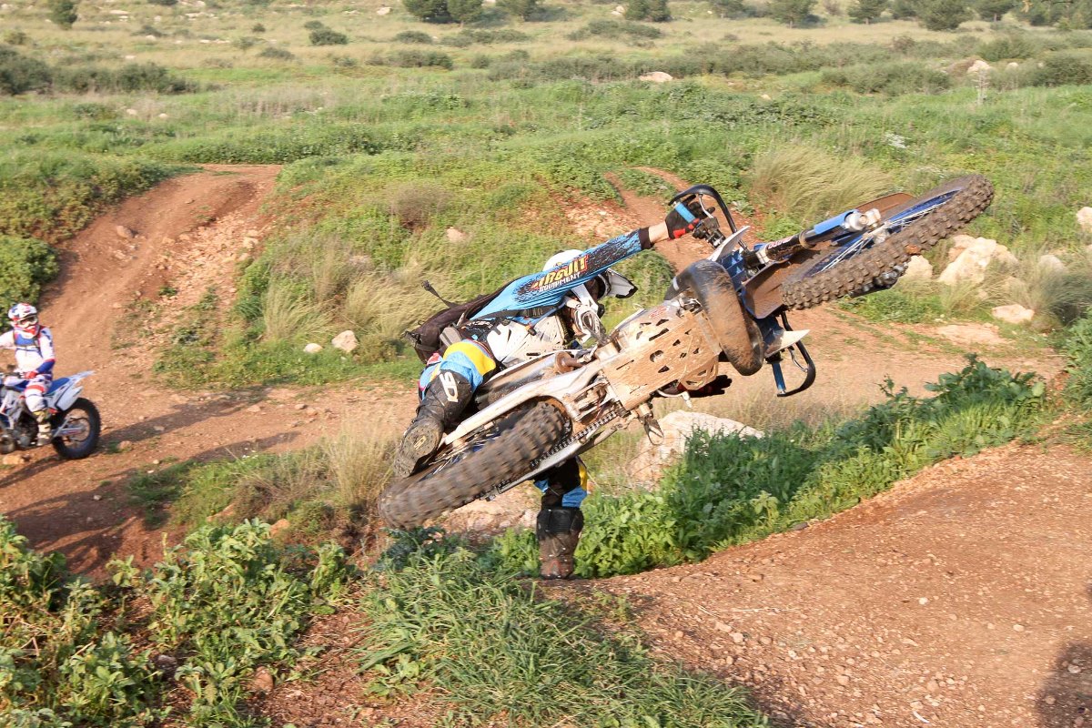 את הבוקר התחלנו בחימום של רכיבה איטית בסינגל פשוט, ומטרתו הייתה לתרגל הישארות בעמידה גם בפניות איטיות והדוקות מאוד שחייבו תנוחת גוף נכונה, חיבור טוב לאופנוע ותפעול עדין של המכלולים. בסיומו של החימום רובנו הזענו מתחת לקסדות וסימני מצוקה נראו במבטי הרוכבים מבעד למשקפי האבק. שני המדריכים חייכו והודיעו לנו שאפשר להתחיל.