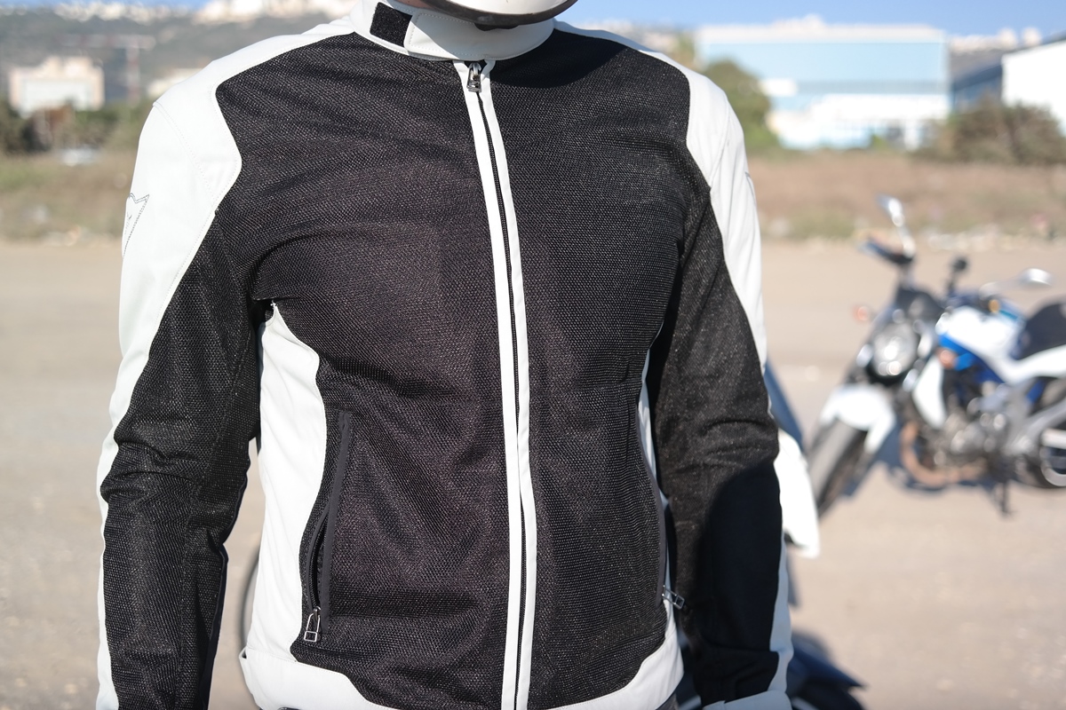 המעיל קל ונעים, ובקושי מרגישים אותו על הגוף. באחת הפעמים הראשונות שרכבנו איתו עצרנו להפסקת קפה, ולהבדיל מהרוטינה הקבועה של להתקלף מכל הציוד, המעיל פשוט נשאר, ורק אחרי שכבר התיישבנו ועברו מספר דקות עלה הרעיון שאולי כדאי להוריד אותו. כבר במהירות עירונית נמוכה ניתן להרגיש אוויר רב זורם לתוך הגוף. מתחת לרשת העבה החיצונית, החלק הפנימי של המעיל עשוי מרשת דמוי 'קולמקס' העוזרת לנדף זיעה ולאוורר את הגוף. שני הדברים יחד הם שילוב מנצח.