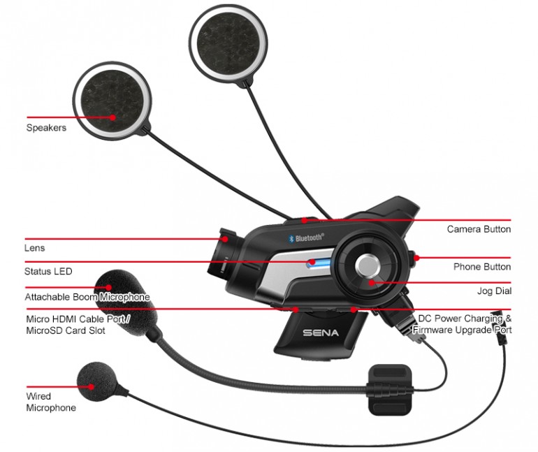 המצלמה המובנית תצלם באיכות של 30 תמונות בשנייה, באיכות 1080p,תאשר צילום תמונות בודדות וכן יודעת לעשות Time-Lapse (שבו מצולמת תמונה בכל מספר שניות ובסופה מורכב ממנה סרטון וידאו באופן אוטומטי). לטענת היצרנית, הדיבורית מגיעה עם תאימות אוניברסלית ותאפשר התאמה לכל מכשיר קשר של כל חברה אחרת. השילוב בין המצלמה לדיבורית מאפשר להקליט את שיחות האינטרקום והטלפון, ואפילו את המוזיקה שתשמעו בזמן הרכיבה.