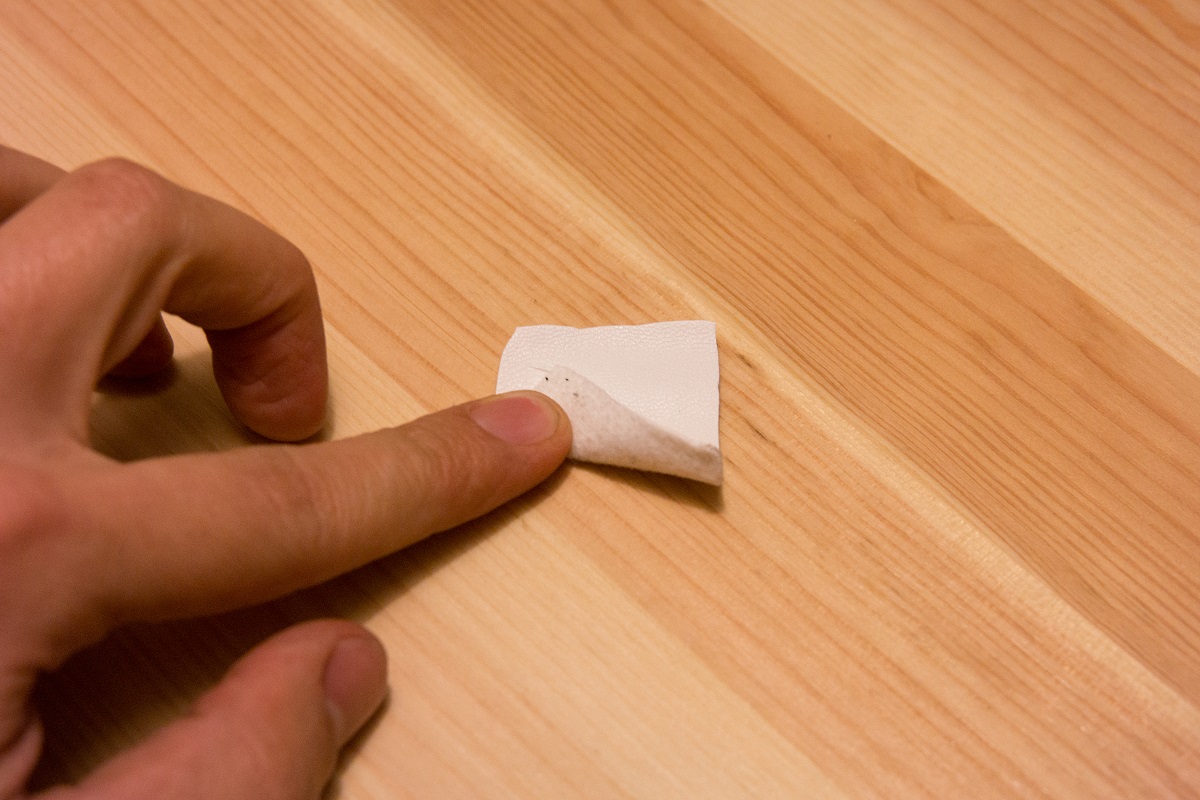 תפסנו את החתיכה עם שני אגודלים ומשכנו. עם מעט מאמץ ה'עור' נחלק לשניים והבד שהחזיק אותו נפרם.
