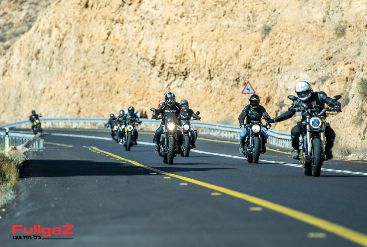 בשעת בוקר מוקדמת התקבצנו כ 120 רוכבי מועדון דוקאטי ישראל בתחנת פז הסיירים שעל כביש 4, ומשם יצאו דרומה לכיוון ערד דרך בית גוברין וכביש 358 היפהפה. בירידות של ערד-סדום לכיוון ים המלח הצבעים משתנים מירוק לחום וצהוב כשהמדבר נפתח וההתרגשות גוברת. אחרי הירודות לים המלח המשיכה הקבוצה בכביש 90 לאורך ים המלח – עד העצירה בוורד יריחו במסעדת Me Casa, שם התקיימה ארוחת הצהריים המפנקת.