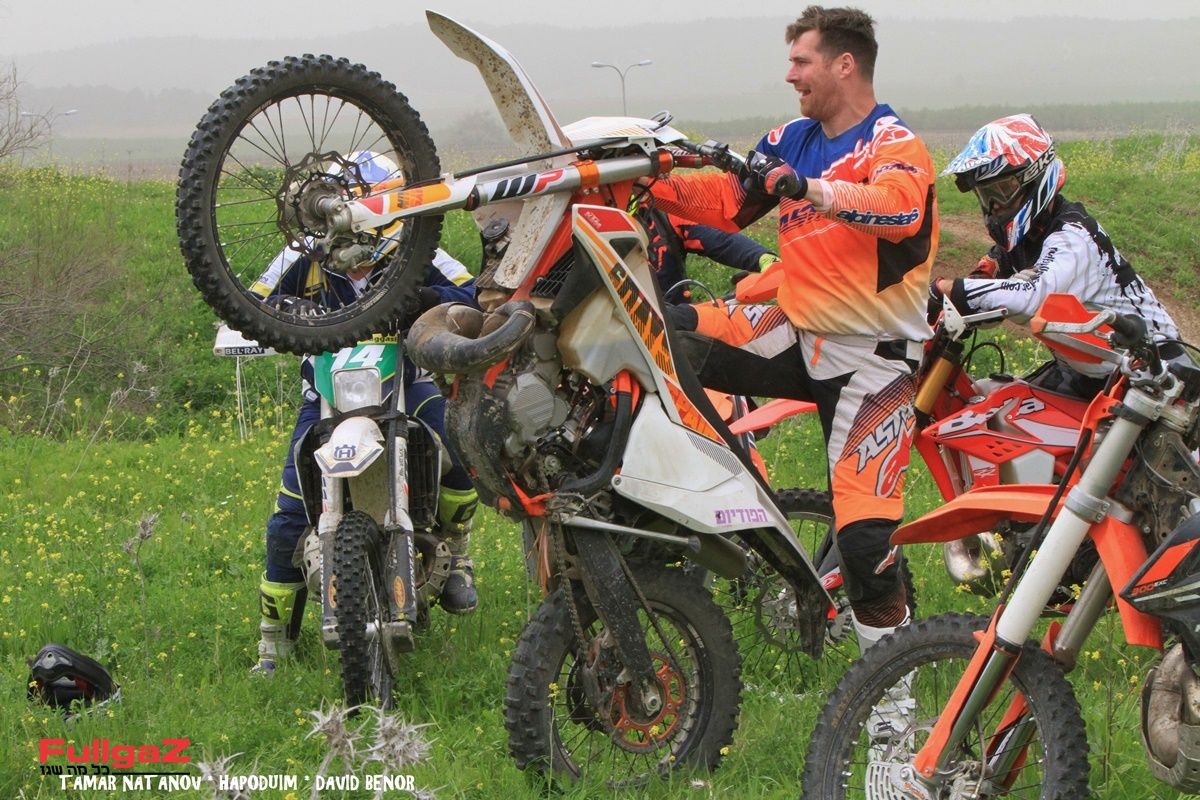 בחלק השני של היום, מיד אחרי שהסביר ותרגל עלייה לווילי מהמקום וסיבוב האופנוע ב-180 מעלות, נייט סיפק לרוכבים את הכיף שאותו הם חיפשו. כי בינינו, כשבא כוכב כזה להדריך, יותר מעניין ומגניב לתקוף מכשולים ביער בסגנון פריסטייל מאשר לעבור הדרכה מתודית ומייגעת. באנו לעשות חיים ולא רק ללמוד.