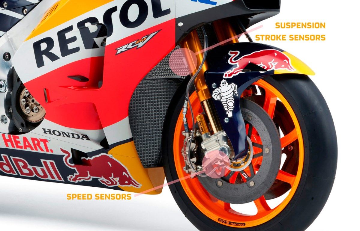 באופנוע MotoGP יש כ-50 חיישנים מפוזרים.