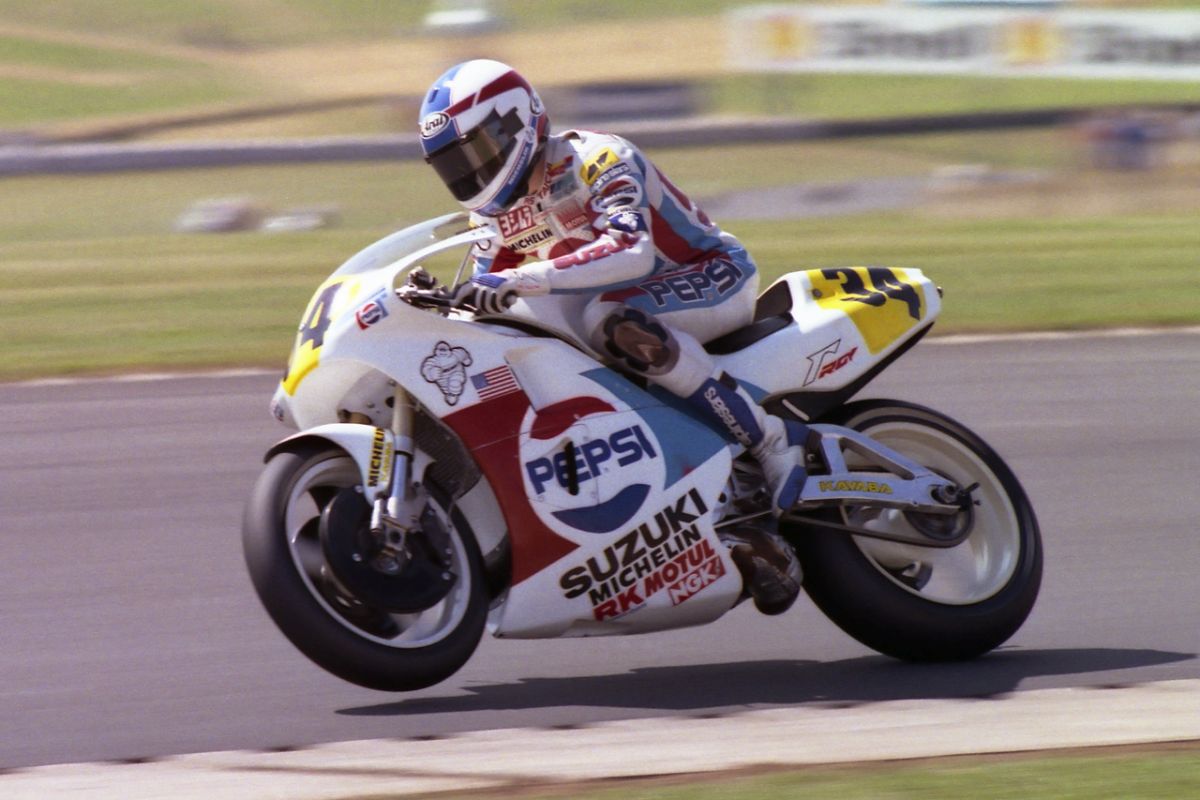 מול וויין רייני נלחם קווין שוואנץ על הסוזוקי, שני אמריקאים על שני יפנים. שוואנץ נאלץ להתמודד עם אופנוע חלש ופחות מוצלח, ולא פלא שהתרסק כל כך הרבה. האופנוע החליף את ה-RG500 בעל מנוע ארבעה צילינדרים מרובע (שני צמדי צילינדרים אחד אחרי השני) במנוע V4 כמו של המתחרים בשנת 1986. זה של שוואנץ סיפק בשנת 1993 לא פחות מ-195 כ"ס ב-13,500 סל"ד על 135 ק"ג של האופנוע.