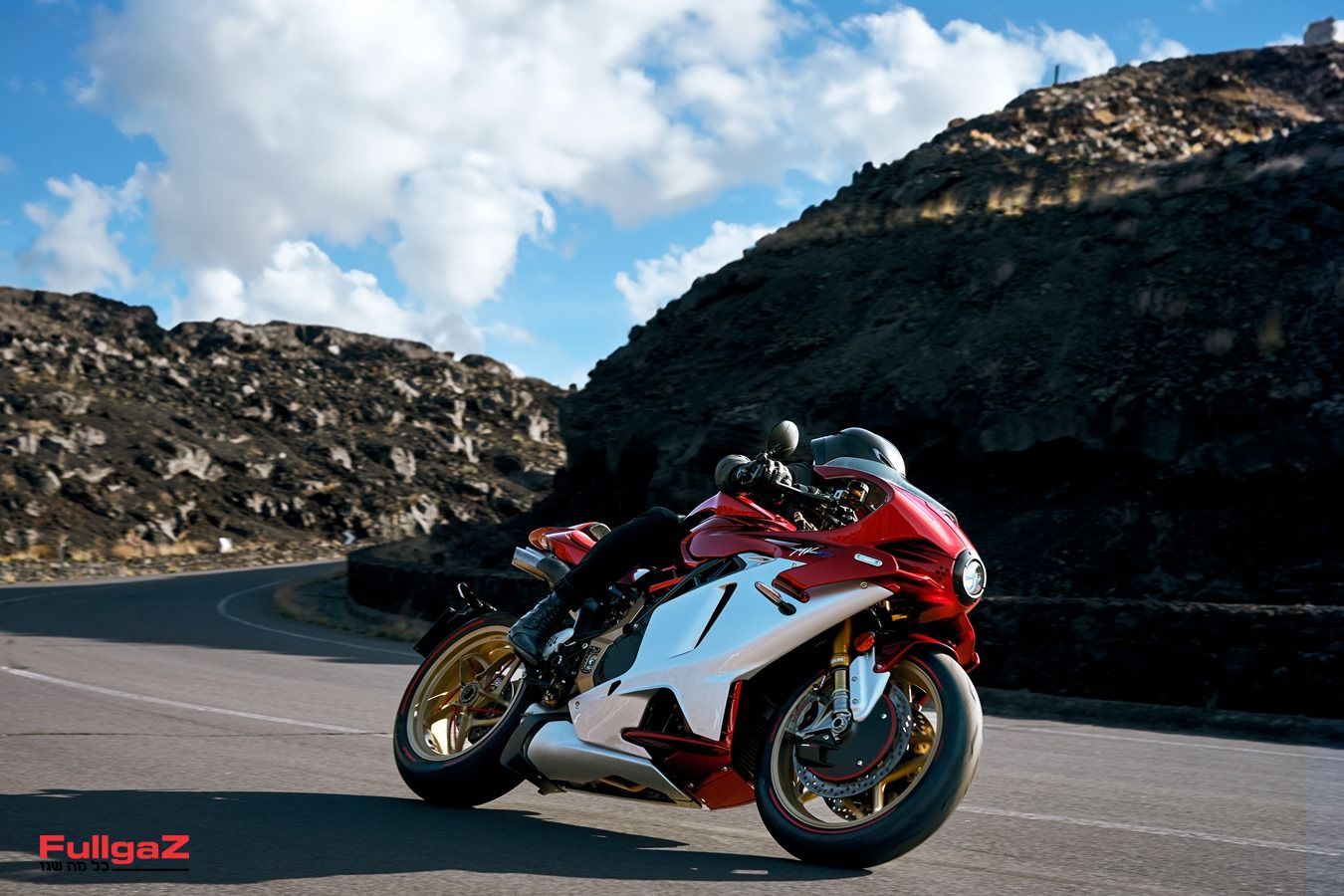 הבולמים הם מתוצרת אוהלינס – FKR מלפנים ו-TTX מאחור – כולל משכך ההיגוי. הבלמים מתוצרת ברמבו DP 330 ‘T Drive’ עם קליפרים GP4 MS ורפידות Z04. יש חישוקי קרבון עם צמיגי סליקס מתוצרת פירלי דיאבלו SBK – מלפנים SC-1 במידה 125/70 ומאחור SC-X במידה 200/65. מערכת האלקטרוניקה מלאה ומציעה כל בקרה אפשרית, כולל דאטא מפורט שמתחבר אונליין למחשב נייד שמגיע ביחד עם האופנוע ונועד לנתח את מהלך ההקפה ולכייל אלקטרונית את הרכיבים השונים.