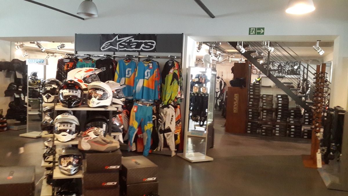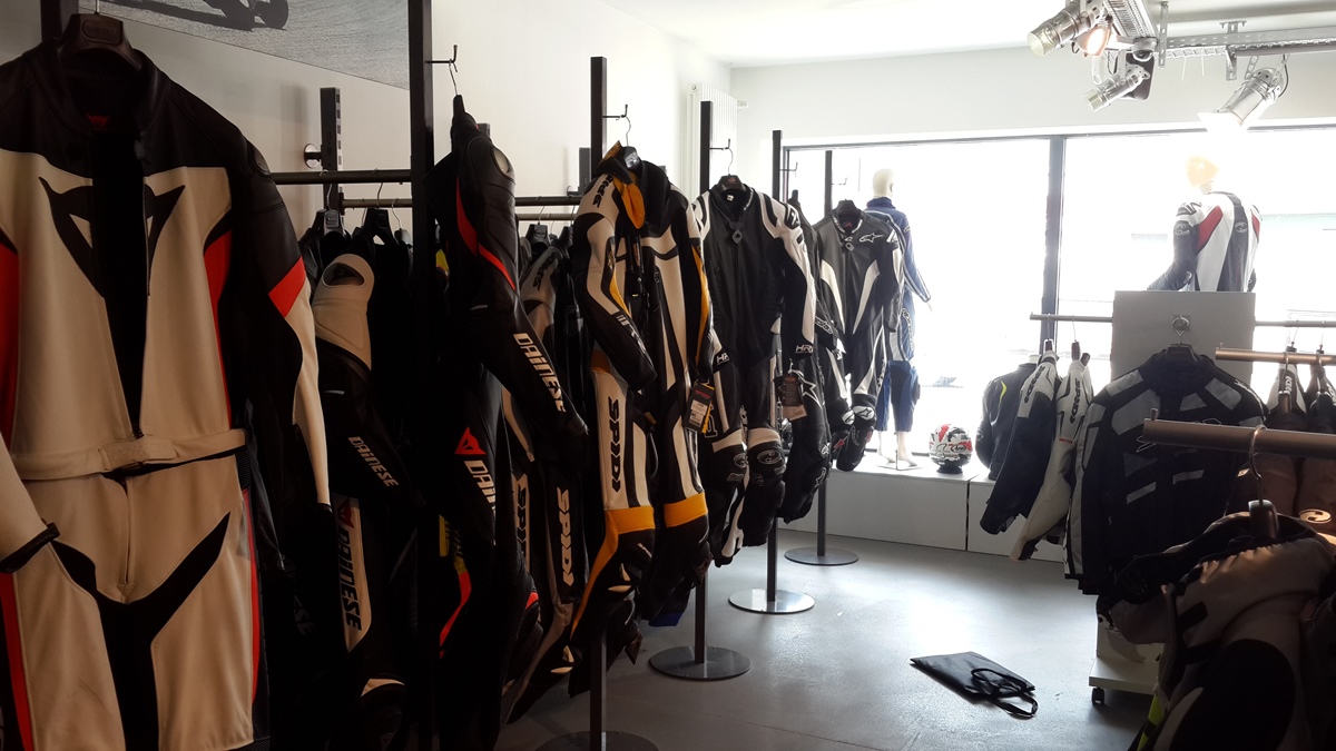 בחנות ניתן למצוא כמות אדירה של חליפות רכיבה, מכל החברות, כל הדגמים וגם ממגוון שנים, זה נכון גם לגבי מגפיים, קסדות, ציוד שטח, כפפות וכל ציוד רכיבה אחר. לא רק ציוד לרוכבי ספורט יש בחנות, אלא גם אביזרים משלימים וציוד מיגון לרוכבים רגועים, רוכבי תיור ואנדורו, החל מבנדנות ועד לגרבי רכיבה.