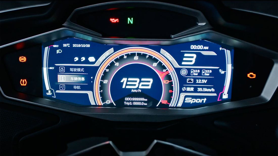 ה-CF MOTO 1250TR-G, דגם התיור הגדול שהוצג, כבר נושא תפקיד חשוב במשטרת סין – כאופנוע משטרתי. בתמונות רואים את הגרסה האזרחית, שתשווק בתחילת שנה הבאה רק במזרח. מנוע ה-LC8 וי-טווין בנפח 1,279 מגיע כאמור מק.ט.מ, שם נפחו 1,301 סמ"ק, כשבדגם הסיני נעשתה הקטנת נפח בעקבות שימוש בצילינדרים שונים. המנוע מספק כאן 140 כ"ס ו-12.3 קג"מ, וההינע הסופי מתבצע באמצעות שרשרת.