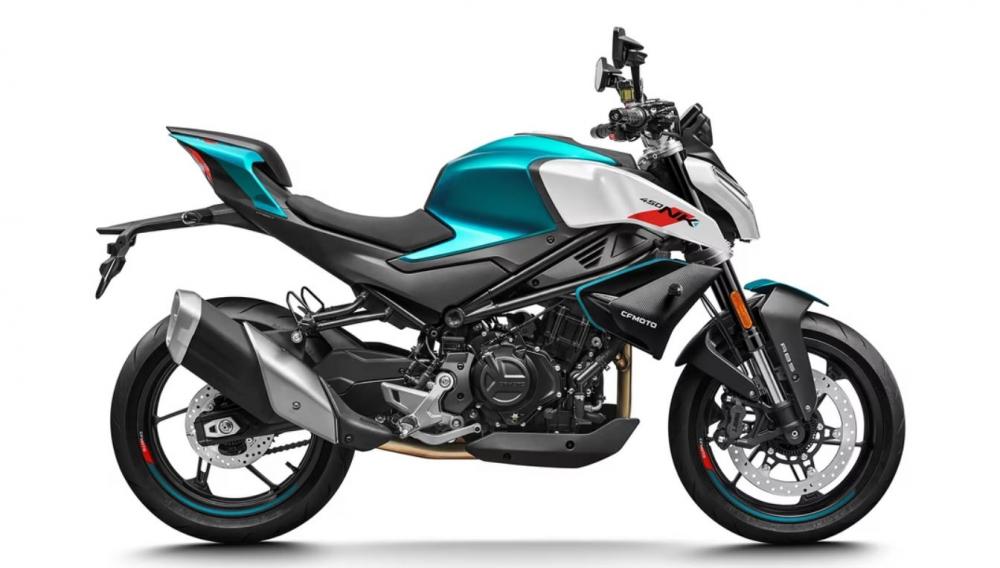 בשנה שעברה הציגו ב-CFMOTO את ה-450SR הספורטיבי – אופנוע ספורטיבי עם מנוע טווין מקבילי חדש המפריד את פיני גל הארכובה ב-270°, מקורר נוזל בנפח 449 סמ"ק, המייצר 48 כ"ס ב־10,000 סל"ד ומומנט של 4 קג"מ. ה-450NK משלב את הנייקדיות של ה-NK ביחד עם המנוע של ה-SR. התאוצה ל-100 קמ"ש מעמידה אורכת מעט פחות מ-5 שניות והמהירות המרבית נמדדת ב-178 קמ"ש.