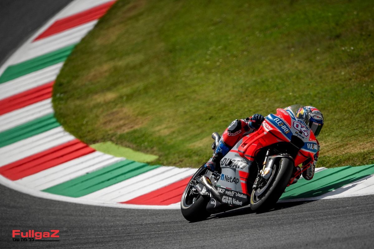 רוכבי קבוצת המפעל של דוקאטי חולקים ביניהם 45 נקודות אליפות במסלול הבית של דוקאטי באיטליה. רוסי הוא הטריגר שפותח את חגיגות ה-GP, כשהוא מצליח לזכות בעמדת הפול במקצה דירוג צפוף ומותח.