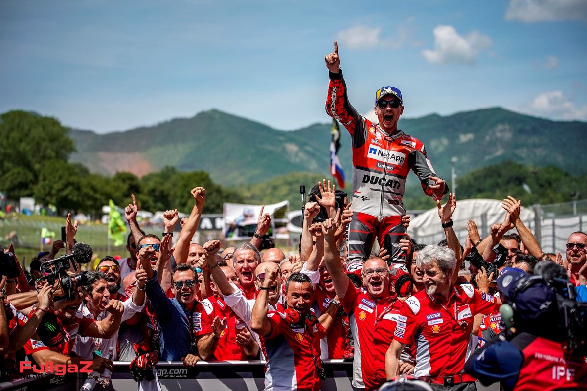 לורנזו מנצח לראשונה על הפרא האדום של דוקאטי, דובי מסיים שני ורוסי סוגר את הפודיום לשמחת האיטלקים.