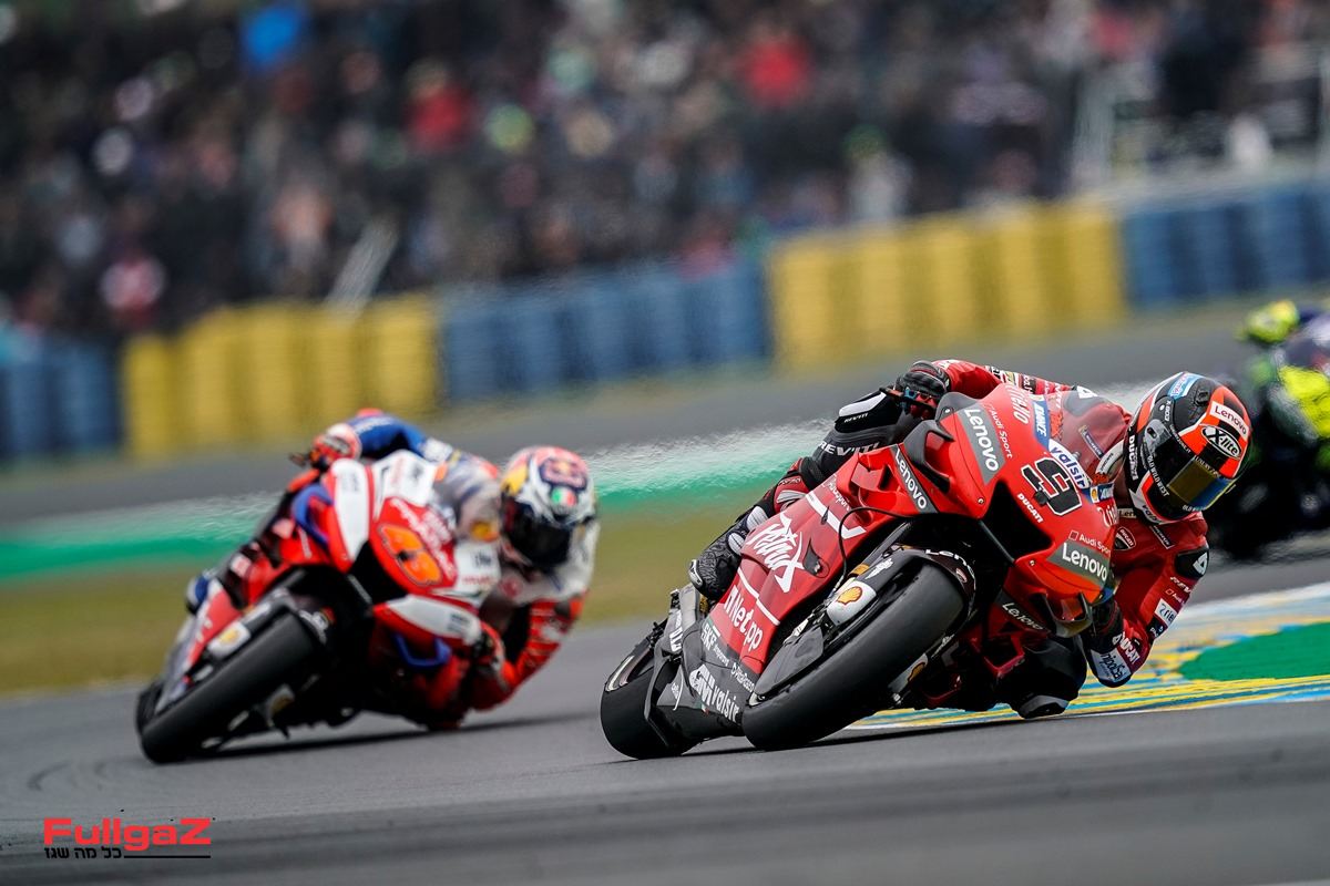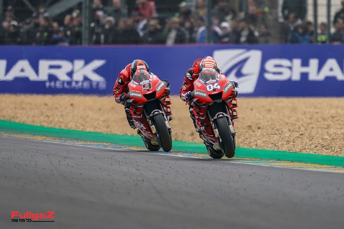 וכך מרקז בחוד ואחריו פטרוצ'י ומילר, שניהם על גבי הדוקאטי GP19, כשהראשון בקבוצת המפעל  והשני בקבוצת הלוויין של פרמאק. דובי ורוסי רביעי וחמישי בהתאמה. לורנזו, שהשליך מספר רכיבים מההונדה של רפסול, שמיני. קוארטררו עשירי וויניאלס מקום אחד אחריו. אלכס רינס, שרודף אחרי מרקז באליפות, מחריב לעצמו את הסבב בלה-מאן כשהוא מדורג 19.
