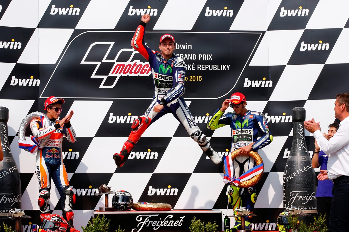 במרבית העונות בעת החדשה, במרוץ ה-11 של העונה, לתואר האליפות היה טוען ברור לכתר, אבל לא ב-2015. הרוכב הכשרוני בגריד והאלוף המכהן, מארק מרקז, חווה פתיחת עונה רעה שמעמידה את הסיכוי להגן על תוארו כרפה ביותר. מנגד, מרקז מנצח פעמיים ומסיים במקום השני פעמיים נוספות בארבעת המרוצים האחרונים. ולנטינו רוסי חווה עונה חלומית לרוכב בגיל 36 ובכלל, כשהוא מסיים על הפודיום בכל מרוץ. מתוכם רוסי מנצח בשלושה מרוצים, אבל עקביות לא תספיק לרוסי והוא חייב לחזור ולנצח מרוצים. חורחה לורנזו החל את העונה באופן מאכזב ואיבד נקודות יקרות. ארבעה ניצחונות רצופים החל מלה-מאן אוששו את לורנזו, כשהוא מוסיף ניצחון חמישי בברנו. ללורנזו מכשלה אחת – לורנזו חייב סבב עם תנאים מושלמים על מנת לנצח, ובניגוד למרקז ורוסי, נכון להיום לורנזו לא מסוגל לרכב סביב בעיות שצצות לו בחלק מהמסלולים.