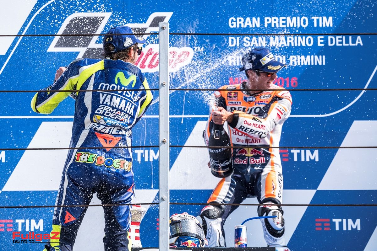 רוסי מסיים שני ומצמצם את הפער ממרקז ל-43 נקודות. לורנזו מסיים במקום השלישי פעם שנייה מתוך שבעת המרוצים האחרונים. מרקז שוב אינו מנצח, אבל מסיים קרוב מספיק לרוסי ולורנזו. המרוץ לאליפות אינו משתנה מהותית במיזאנו, ואחרי 13 מרוצים, כשנותרו עוד 5 לתום העונה, נראה כי רק תקלה חמורה של מרקז תמנע ממנו את הכתר. רוסי זקוק לחצי נס ולתקלה של מרקז, ולורנזו נראה כמי שאיבד כל סיכוי להגן על התואר.