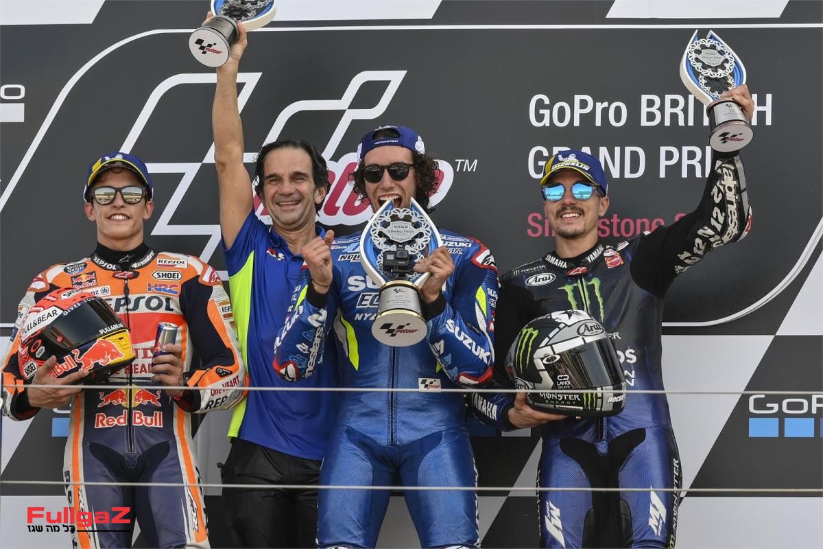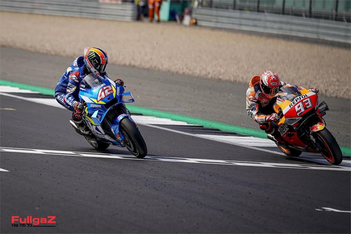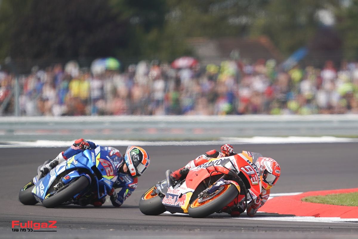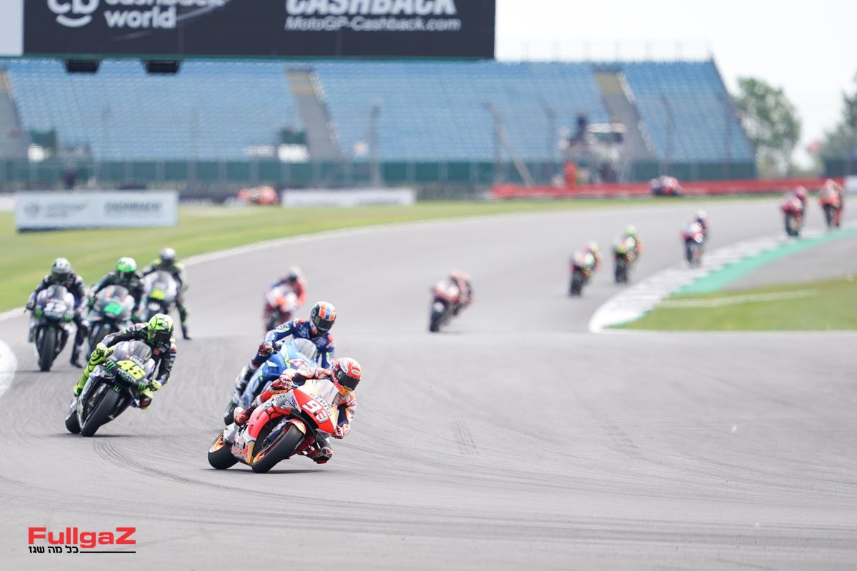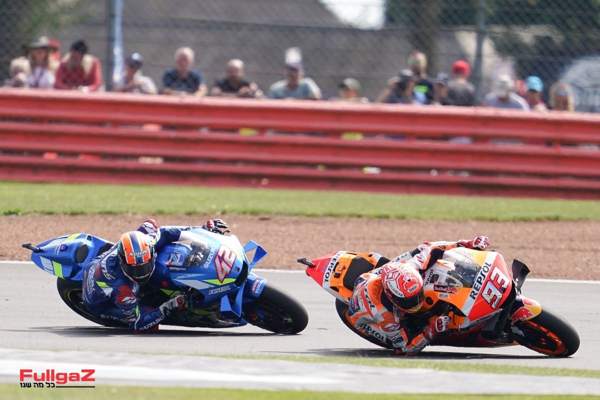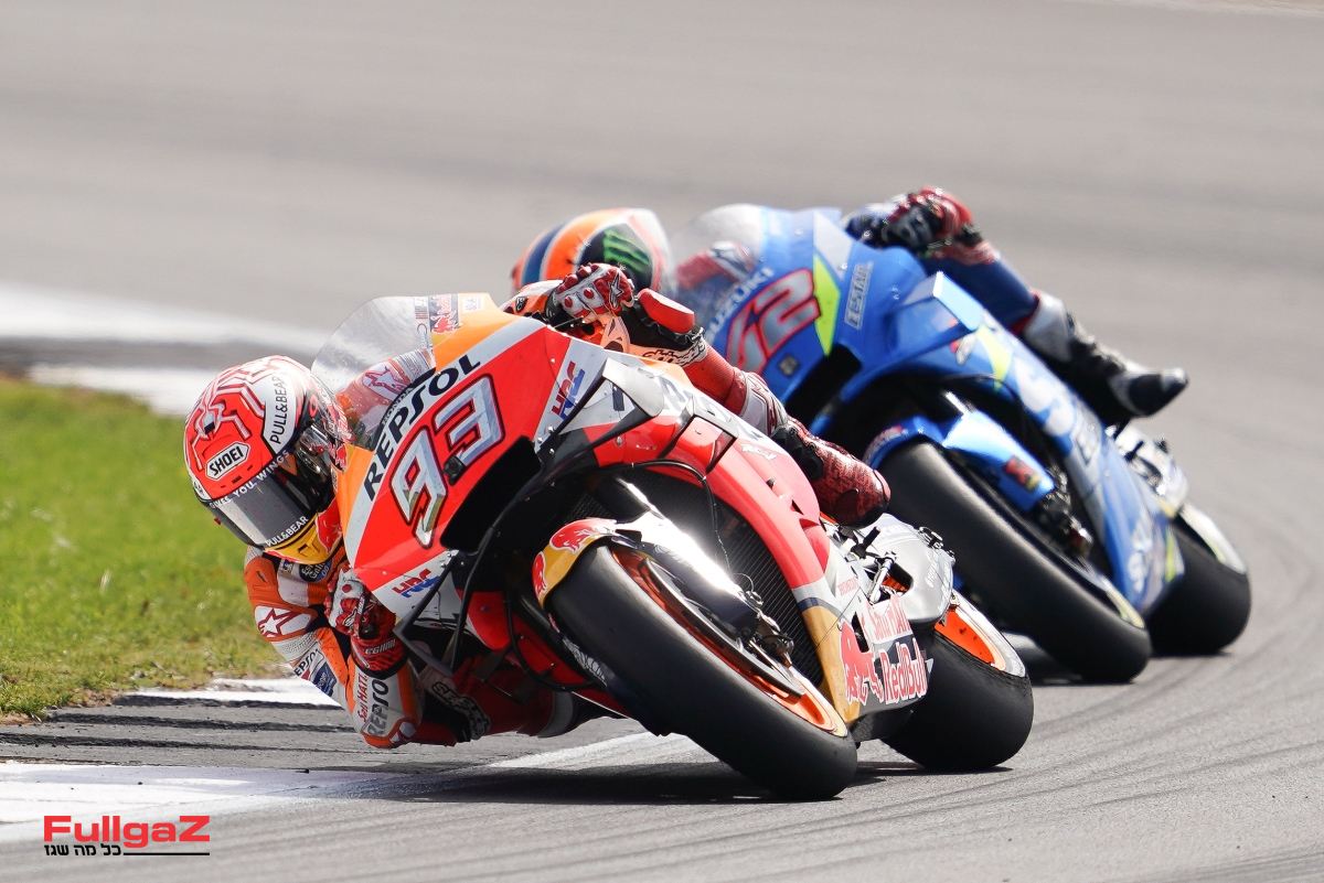 סילברסטון אינו המסלול החביב על מארק מרקז ועל ה-RC213V של קבוצת המפעל רפסול-הונדה. מרקז ניצח בסילברסטון ב-2014, אבל מאז השאיר את הניצחון לוויניאלס על הסוזוקי, רוסי על הימאהה ודוביציוזו על הדוקאטי. חביב או לא, מרקז היה בחוד לכל אורך האימונים, ובדירוג מרקז עוצר את השעון על 1:58.168 דקות – שיא מסלול חדש, כ-0.4 עשיריות מהיר מרוסי – וכובש פול פוזישן מספר 60 מתוך 120 ניסיונות. מדהים. אחריו בשורה הראשונה רוסי על גבי הימאהה YZR-M1 של קבוצת המפעל מונסטר-ימאהה, וג'ק מילר על גבי הדוקאטי GP19 של קבוצת פרמאק.