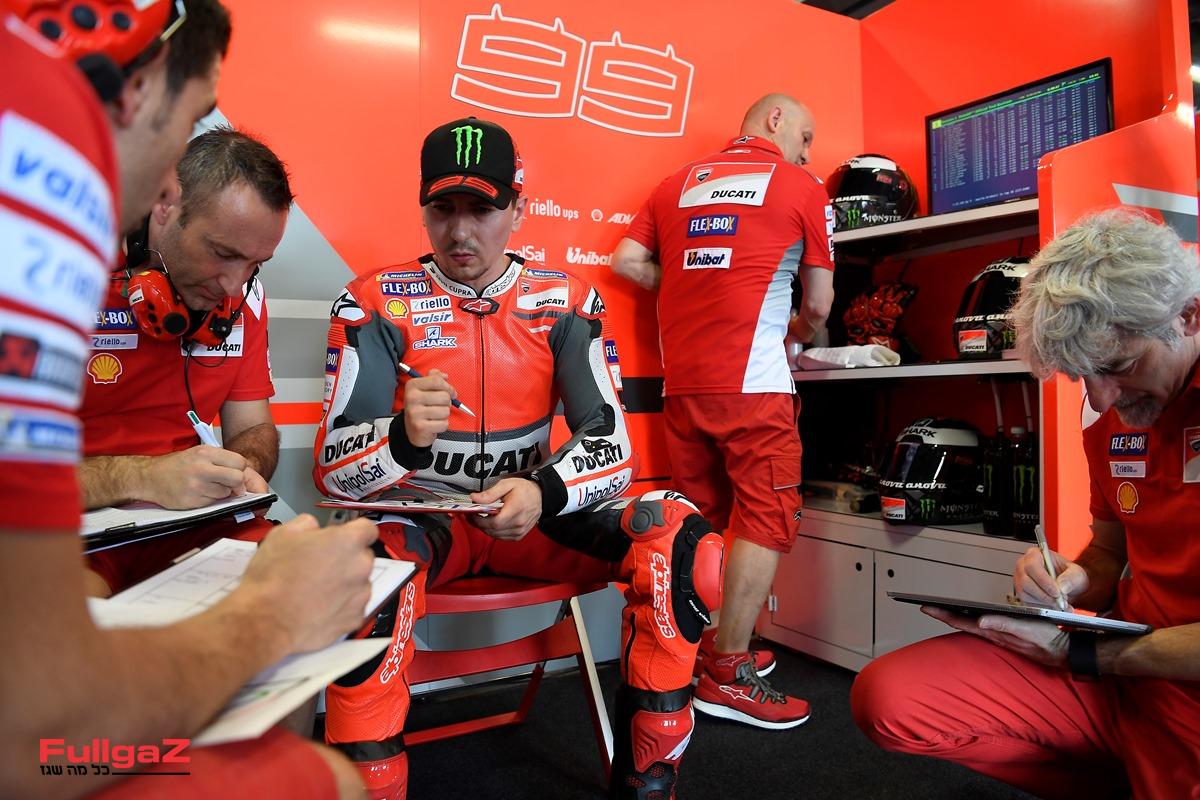 בדוקאטי מתקשים כשדובי מדורג שביעי ולורנזו מדורג במקום ה-16. אותו לורנזו שהוביל את המבחן בספאנג. ג'ק מילר על הדוקאטי של פראמאק ממשיך להפתיע ומדרג שישי, כשדנילו פטרוצ'י מדורג תשיעי. לג'יג'י דלינייה ולדוקאטי GP18 יש עדיין דרך לעשות.