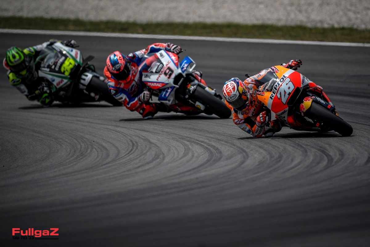 קטלוניה 2018 הרקיעה שחקים בכמות הנופלים. אולי זה האספלט החדש ואולי זו החזרה למתווה המסורתי של קטלוניה ששונה בעקבות מותו של לואיס סאלום, רוכב ה-Moto2. רק 14 רוכבים מתוך 26 מזנקים ראו את דגל השחמט. מתוכם, מורבידלי ראה גם את מלכודת החצץ ואת הפיט-ליין, ויצא שוב על מנת לזכות בשתי נקודות אליפות. מיקה קאליו, רוכב המבחן של ק.ט.מ, לא מסיים הקפה ראשונה. מיד אחריו מתרסק סילבן ג'ינטולי ברכיבת אורח על הסוזוקי GSX-RR. אליהם מצטרפים תומאס לוטי על גבי ההונדה של מארק VDS, אלייש אספרגרו והאפריליה RS-GP, חבייר סימון על הדוקאטי של ריאלה-אווינטיה, וגם דובי על גבי הדוקאטי הרשמי. אלכס רינס פורש עם הסוזוקי GSX-RR. טקאקי נקאגמי צונח בלואו-סייד עם ה-RCV של LCR אידומיצו, כשהוא עוקף את סמית' ולוקח איתו למלכודת החצץ את ה-RC16 ואת סמית' במרוץ הטוב ביותר שלו העונה, כשהוא מחפש רכיבה ל-2019. ג'ק מילר והדוקאטי של פרמאק מתקשים בקטלוניה. חפיז שיירין עולה להיי-סייד ושובר את הימאהה YZR-M1 של קבוצת טק-3, אחרון חביב הוא טיטו רבאט, שמוצא את עצמו רוכב על דוקאטי בוער בישורת ונוטש אותו למטפים של המארשלים בחצץ של פנייה 1.