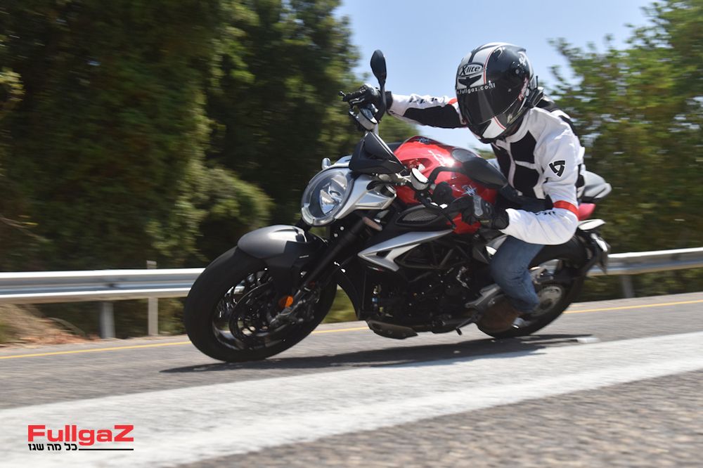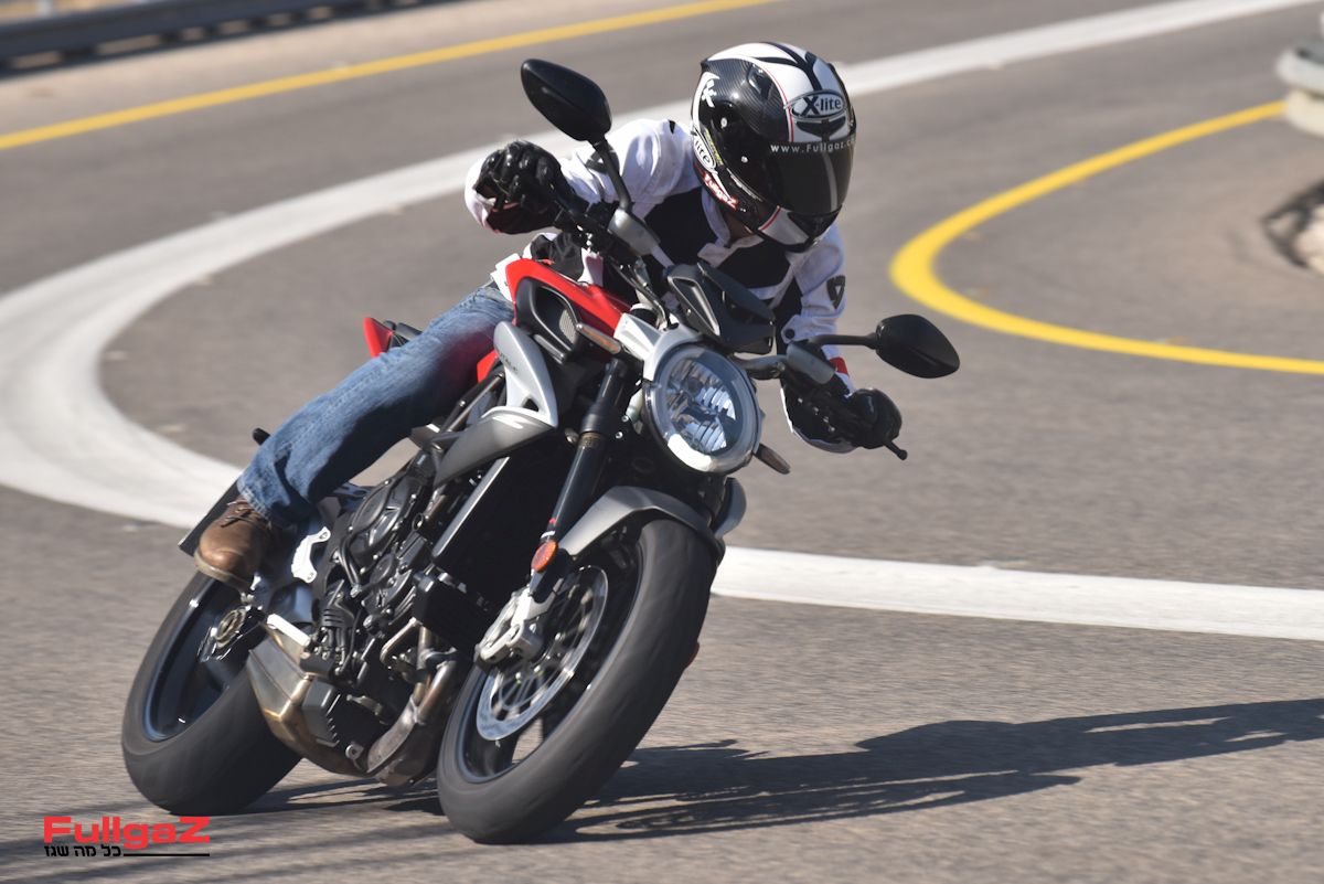 כפועל יוצא, ההתנהגות חדה וסופר-מדויקת. המתלים הקשיחים מסתדרים מצוין על אספלט איכותי שסלול היטב, כמו זה של כביש אלקוש-בירנית למשל. שם ההתנהגות של הברוטאלה תגרום לכם לצרוח בקסדה מרוב אושר מהספורטיביות האיטלקית הבלתי מתפשרת. על כל כביש אחר, אגב, שסלול פחות טוב או מכיל חריצים ושברים, אתם לא תפסיקו לקלל את האמא של המהנדס שכייל את הבולמים האלה. ויודעים מה? גם עם זה אנחנו חיים מצוין כששמים את הברוטאלה בקונטקסט שלו.