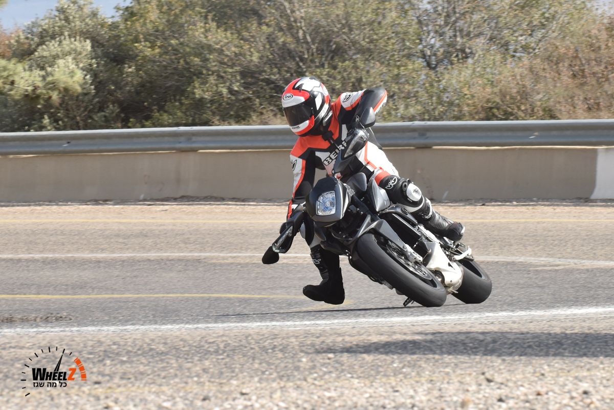 עברו הרבה תחנות דלק עד שהגעתי לכביש מפותל ראוי, אבל אני חייב להודות שזה היה שווה את זה. אי אפשר להתבלבל מאיפה קיבל הריבאלה את הגנים שלו, והיכולות הספורטיביות מרשימות לכל הדעות. המנוע, שסוחב מסל"ד נמוך, מספק סאונד ממכר שרק מנוע טריפל יכול לספק, וכשמותחים אותו הוא מספק המון כוח. כמו כל אופנוע היפרמוטו, יכולת האלתור של הרוכב עם תנוחת הרכיבה היא עצומה, והריבאלה משתף פעולה עם הכול – ברך באספלט, רגל בחוץ סטייל סופרמוטו, רגליים על הרגליות – הכל הולך, רק תפוצץ גז.