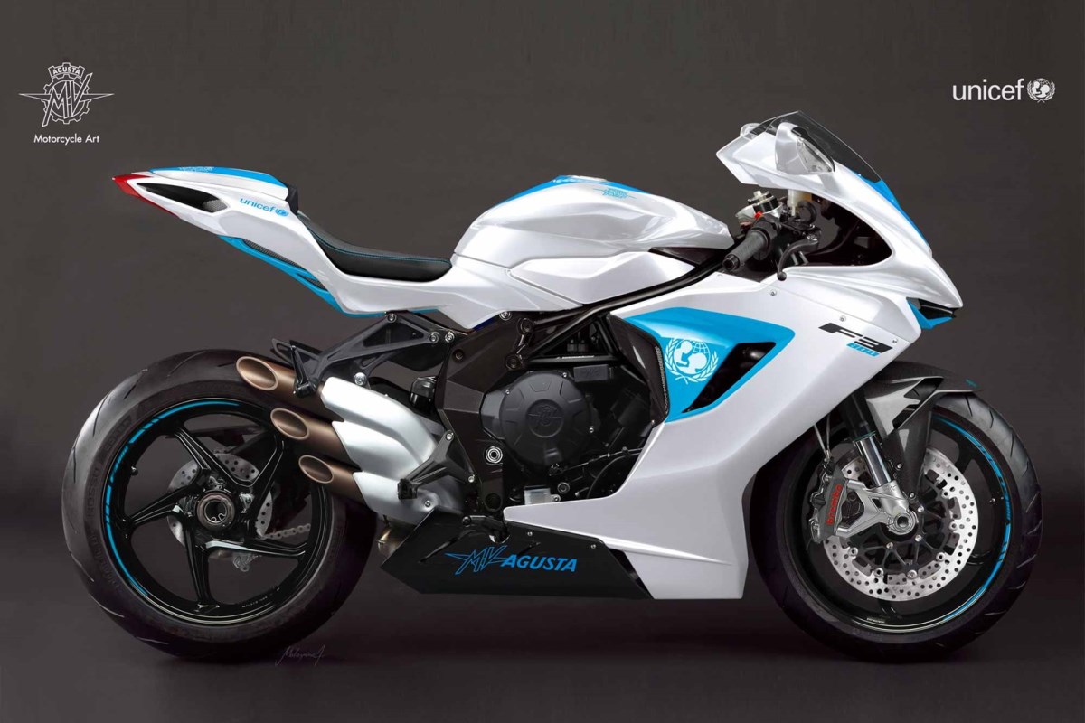 MV אוגוסטה יצרו גרסה מיוחדת של ה-F3 800 – גרסת הטריפל המגניבה עם 148 כ"ס – והציבו אותה למכירה בערב תרומות לסניף האיטלקי של ארגון יוניצף בסרדיניה.