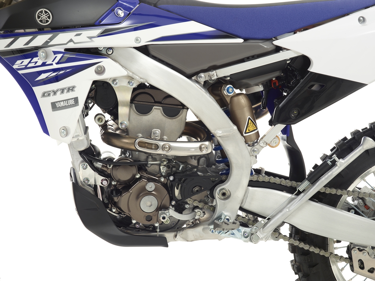 נתחיל בחידוש החשוב ביותר – המנוע. כזכור, לשנת 2014 שחררה ימאהה את המוטוקרוס רבע ליטר שלה, ה-YZ250F, כשהוא מצויד במנוע חדש המבוסס על זה של האח הגדול – ה-YZ450F. המנוע החדש עם צילינדר מוטה אחורנית במקום לפנים במנוע קונבנציונלי, וראש המנוע בו הפוך, כלומר היניקה מלפנים והפליטה מאחור. כעת, לשנת 2015, גם ה-WR250F – דגם האנדורו, מקבל את המנוע החדש. על פי ימאהה גל הארכובה, הטלטל, הבוכנה, ראש המנוע, השסתומים (4 במקום 5 בדגם היוצא), גלי הזיזים ויחס הדחיסה (13.5:1) – כולם זהים בין שני הדגמים, כך שה-WR החדש צפוי להיות חזק יותר בתחום הסל"ד הגבוה וכן חד יותר בסל"ד נמוך ובינוני. המנוע כמובן מוזרק דלק, כשמפת ניהול המנוע מותאמת לעבודת אנדורו. כך או כך, כמו ב-YZ250F, ניתן לשנות פרמטרים במחשב ניהול המנוע וכן להתאים מפות שונות על ידי מכשיר הטיונינג של ימאהה. שינויים נוספים שנעשו במנוע – נוספו כ-200 סמ"ק של שמן ביחס ל-YZ כך שה-WR מכיל 1.1 ל', חוזקה מערכת הקירור והותקנה מערכת הטעינה של ה-WR450F.