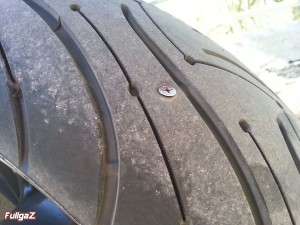 הצמיגים החדשים לסיבי החזירו לנו את חדוות הרכיבה, ומצאנו את עצמנו נותנים קילומטראז' מכובד. במהלך הימים הראשונים הספקנו להשתתף באימון רכיבה אחד במגרש החניה של תל ברוך ולצאת לטיול בכבישים המפותלים של השומרון. אבל אז, 3 ימים ו-700 ק"מ אחרי התקנת הצמיגים, גילינו בורג תקוע בצמיג האחורי. הזזנו מעט את הבורג וראינו שאכן דולף אוויר.