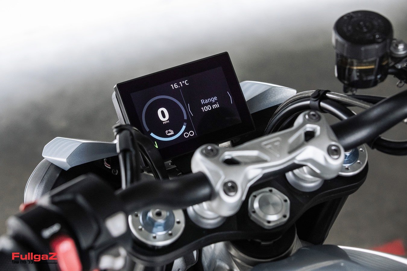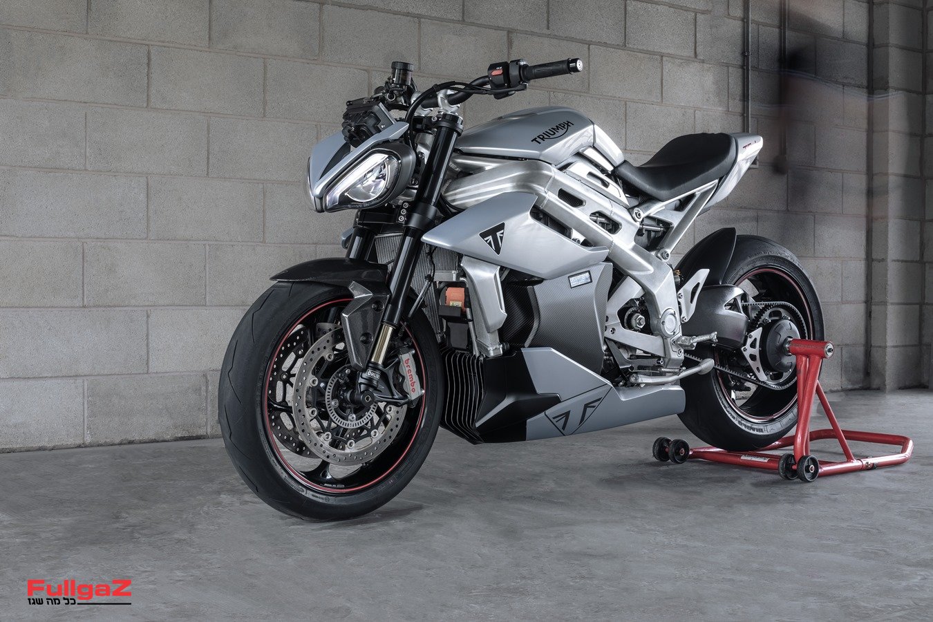 בתחילת השנה הנוכחית פורסמו תמונות ראשונות ופרטים טכניים. העיצוב דומה לסטריט טריפל על טהרת החשמל. הטכנולוגיה מגיעה ממרוצי הפורמולה E, כאשר יחידת המנוע שוקלת כ-10 ק"ג (מנוע בעירה פנימית יכול לשקול יותר מ-60 ק"ג, לשם להשוואה) ומפיק 130 קילוואט, שהם כ-177 כ"ס. לפי טריומף, מהירות המנוע מגיעה ל-18,000 סל"ד, והמומנט עומד על 11 קג"מ מסל"ד אפס. הסוללה מובנית בתוך יחידת המנוע, כאשר ניתן יהיה להטעין אותה ממצב ריק עד ל-80% מהקיבול בתוך 20 דקות – נתון משמעותי ביותר לקראת פיתוח הכלים הבאים. טווח הרכיבה המשוער עומד על 160 ק"מ, והכלי שוקל 220 ק"ג – חמישה ק"ג פחות מהדוקאטי V21L החדש והייעודי למסלול. עוד במפרט: שלדת אלומיניום, בולמי אוהלינס, בלמי ברמבו M4 מונובלוק, רצועת הינע מקבלר, וכן כל הבקרות רכיבי האלקטרוניקה העדכניים ביותר.