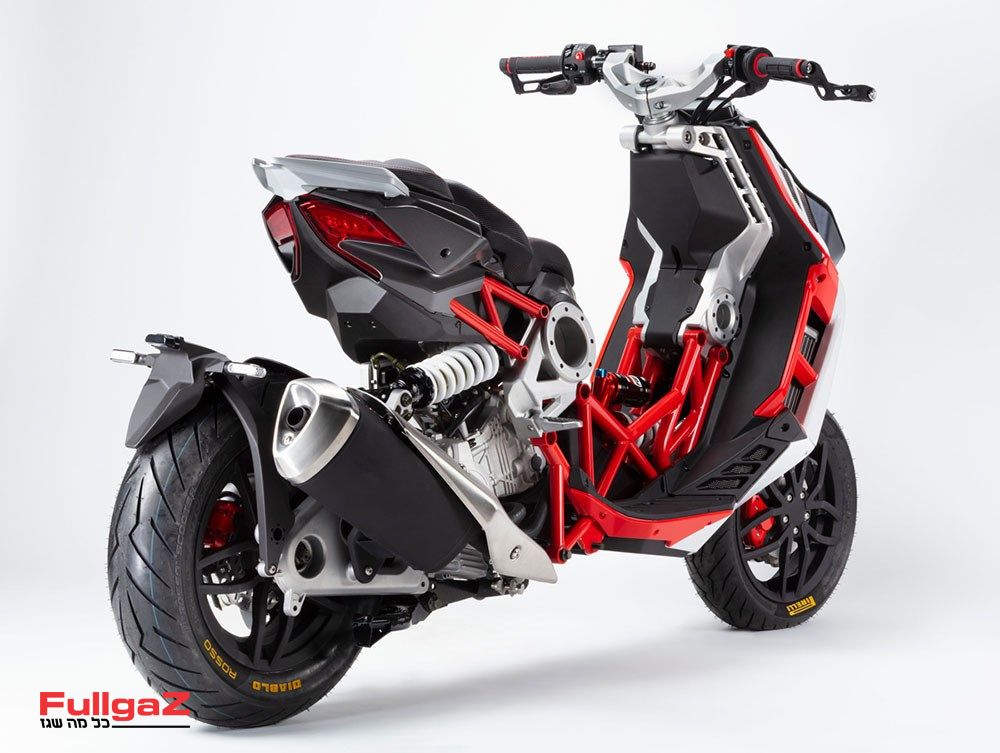 שלדת הצינורות עשויה מפלדה, כאשר המתלים מזכירים מאוד מבנה של קטנוע. מלפנים מתלה חיבור אנכי שמתחבר לשתי זרועות של אוהלינס, ומטרתה להפריד את ההיגוי והספיגה לשני צירים נפרדים. מאחור יש זרוע אחורית 'נגררת' שמחברת את התמסורת לגלגל האחורי. מערכת הבלימה מורכבת משני דיסקים בקוטר 280 מ"מ מלפנים ודיסק יחיד בקוטר 260 מ"מ מאחור. החישוקים בקוטר 13″ עם צמיגים במידות 120/70 ו־150/70. גובה המושב עומד על 790 מ"מ, מיכל הדלק מכיל 12 ליטרים, והמשקל עומד על 151 ק"ג.