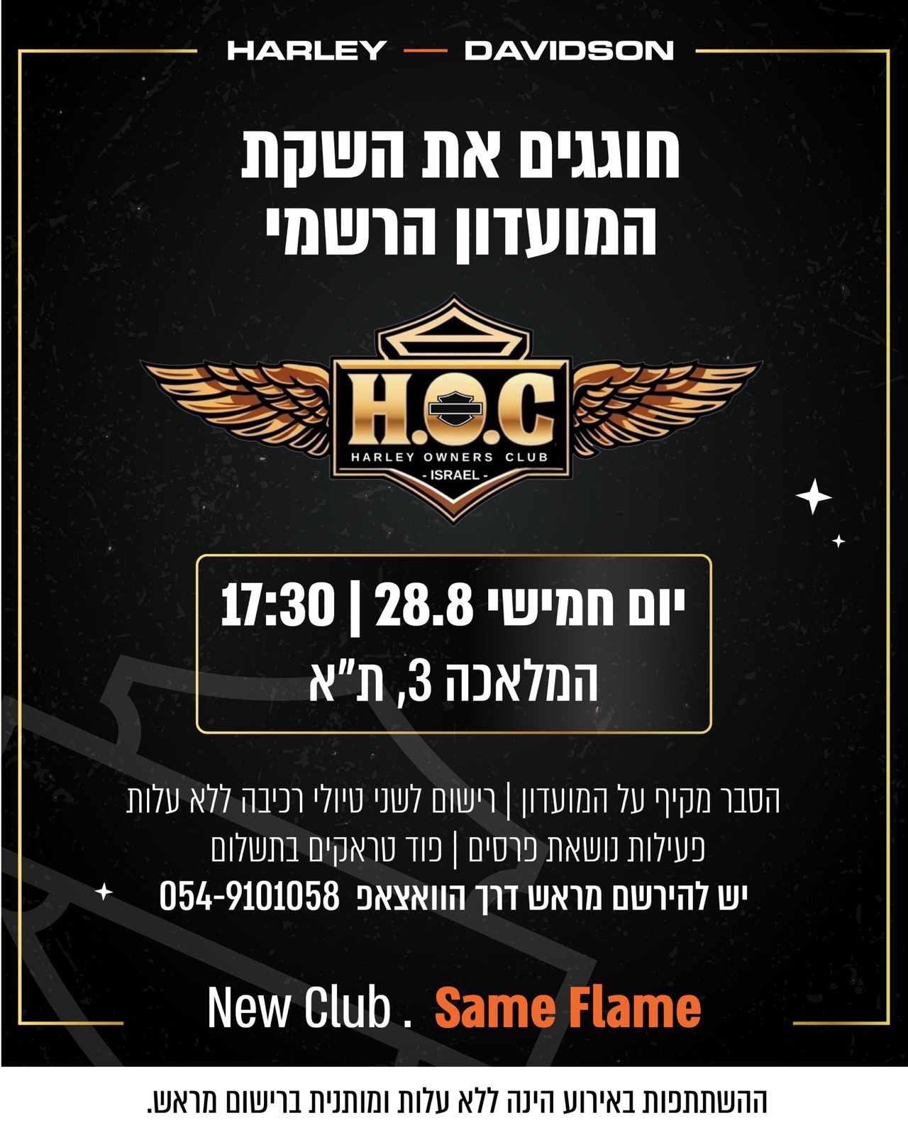 אלבר מוטו, יבואני הארלי דיווידסון לישראל, מודיעים על השקת HOC – מועדון רוכבים חדש – ומקיימים אירוע השקה ביום חמישי הקרוב.