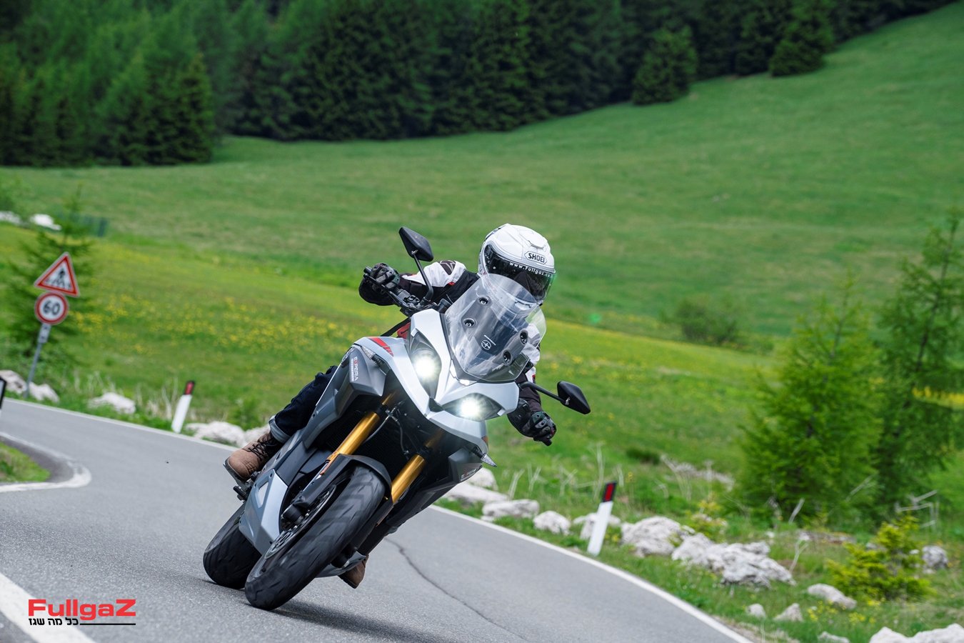 מערכת הבלמים מורכבת מצמד דיסקים קדמיים בקוטר 330 מ"מ עם קליפרים רדיאליים של ברמבו ומדיסק אחורי בקוטר 240 מ"מ. יש כמובן יחידת ABS מודרנית של בוש מדגם 9.3MP, המיועדת גם להטיה – עם חיישן למדידת אינרציה IMU – ויש בקרת אחיזה ב-6 מצבים. אגב בלימה, ניתן לכוון את 'בלימת המנוע', שהיא למעשה רמת הטעינה בעת סגירת המצערת. יש 3 מצביי 'בלימת מנוע' ומצב רביעי שבו הבלימה / טעינה מנותקת לגמרי. אנחנו מצאנו שהמצב השני והשלישי הם היעילים ביותר לרכיבה בכבישים מפותלים, ובהם יש גם מינימום שימוש בבלמים ומקסימום טעינה ברכיבה.