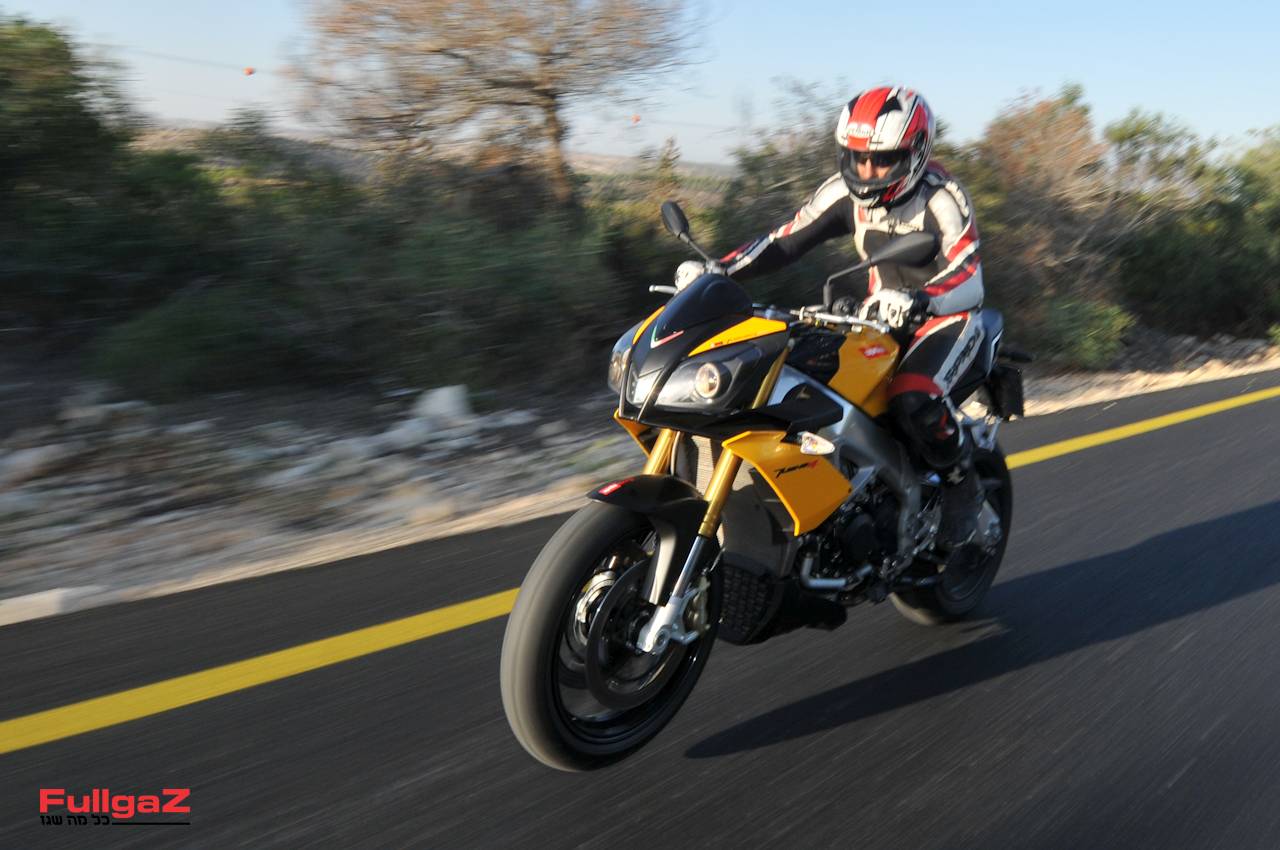 אפריליה החלו להימכר בישראל בשנת 2009, כאשר הטואונו הצהוב המדובר הגיע ב-2011 והיה הדגם העדכני ביותר של הנייקד, שהוצג בתחילת אותה השנה. מנוע ה-V4 החדש של ה-RSV4 כוון להספק נמוך יותר של 167 כ"ס על-ידי צילינדרים ובוכנות שונים, מערכת הזרקה חדשה, מצערת חשמלית ומעבד מהיר יותר. הטואונו V4R הציע 3 מצבי ניהול מנוע – אגרסיבית למסלול, שלא היה בישראל דאז, חזקה לרכיבה ספורטיבית, ומצב נוסף לרכיבה בגשם. שינוי נוסף ביחידת ההנעה היה בתיבת ההילוכים, שם שלושת ההילוכים הראשונים קוצרו במעט על מנת להתאים טוב יותר לאופי האופנוע. גם הפרונט הוחלף במעבר לסטריטפייטר, אם כי לא בוצע פה שנמוך אלא התאמת מזלג איכותי אחר של זקס, וכך גם הבלמים הרדיאליים של ברמבו.