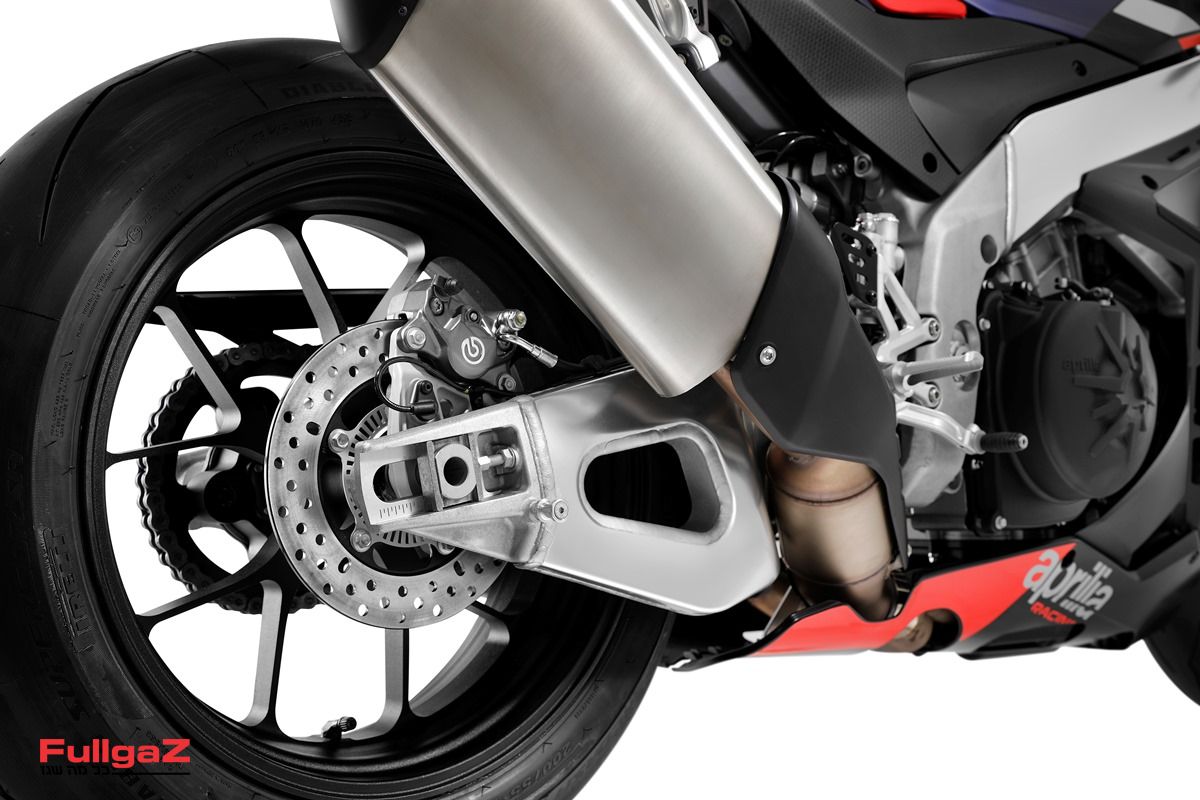 הבולמים הם מתוצרת אוהלינס – FKR מלפנים ו־TTX מאחור – כולל משכך ההיגוי. הבלמים מתוצרת ברמבו DP 330 ‘T Drive’ עם קליפרים GP4 MS ורפידות Z04. יש חישוקי מגנזיום עם צמיגי סליקס מתוצרת פירלי דיאבלו SBK – מלפנים SC-1 במידה 125/70 ומאחור SC-X במידה 200/65. המשקל המוצהר עומד על 165 ק"ג.