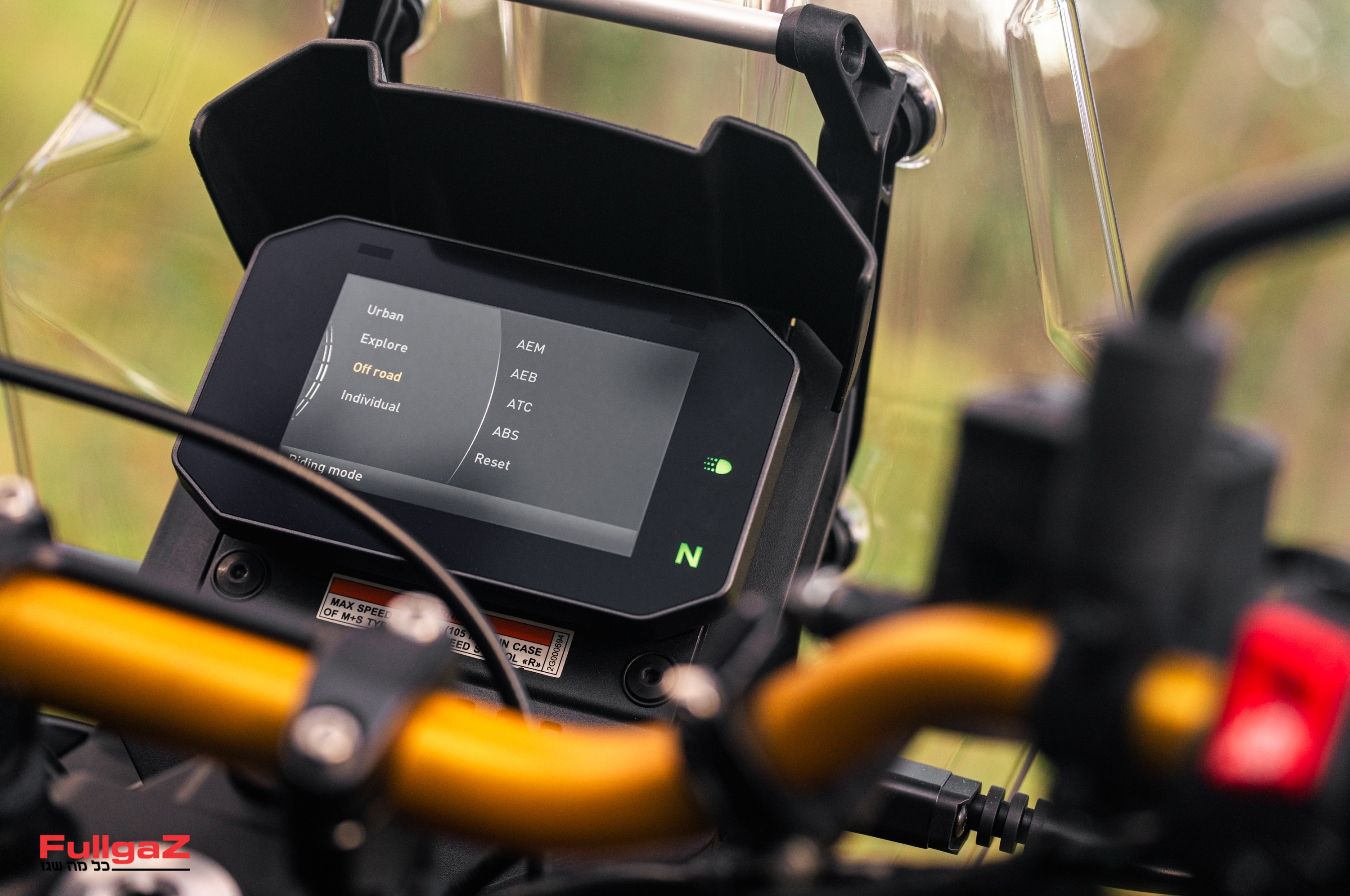 - אלקטרוניקה ובקרות: מצערות חשמליות, 3 מצבי רכיבה – ספורט, אקו, גשם, בקרת אחיזה רב־שלבית כולל ניתוק, מערכת ABS עם ניתוק גלגל אחורי, מסך TFT בגודל "5 כולל חיבור לסלולר, פנסי LED היקפיים