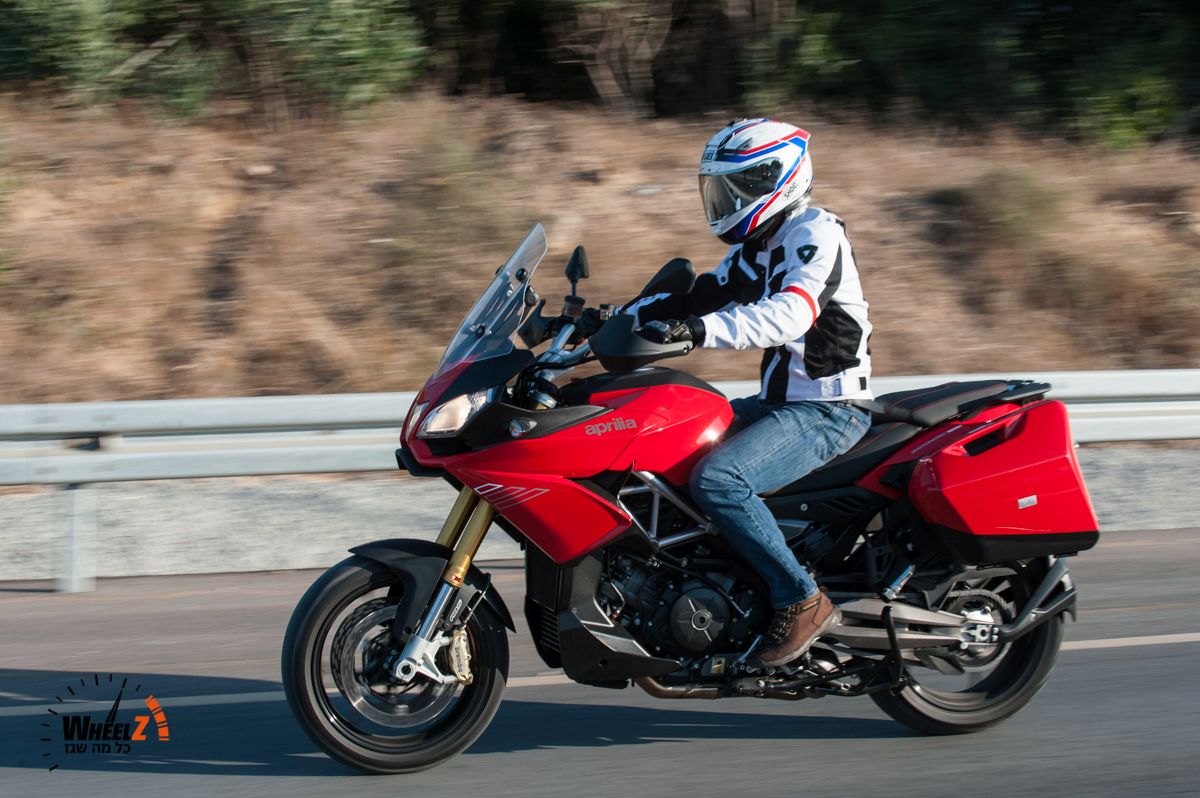 פג"ז – שומע אותי אדון אפריליה? לא, יופי. כשמחוג הסל"ד על הספרה 9 באמת קשה לשמוע את המחשבות שלי, אז אני אחשוב אותן בשקט, שלא ייעלב לי. 156 קמ"ש כמהירות מרבית זה יכול להיות יפה מאוד, אבל בשביל זה צריך ירידה ארוכה והתכנסות מאחורי מגן הרוח, כך שזה לא ממש רלוונטי. מהירות שעון של 140 קמ"ש זה מה שמקבלים ממצערת פתוחה עד הסוף בכביש שש, וה-GPS מתייצב במקביל על 126. בעליות יש מספיק מומנט לשמור על 120-130 בשעון, ובסך הכל אפשר לעשות איתו בינעירוני מהיר בלי בעיה, אבל ההרגשה היא שמגיע לקטנוע הזה עוד קצת כוח. בעצם לא עוד קצת, עוד הרבה. קטנועי ה-300 המודרניים כבר יצאו מהמסגרת של 250 מחוזק, וכאן זה בדיוק מה שמקבלים. מה שלפני חמש שנים עוד היה מקובל איכשהו, מרגיש היום מיושן וחסר.
