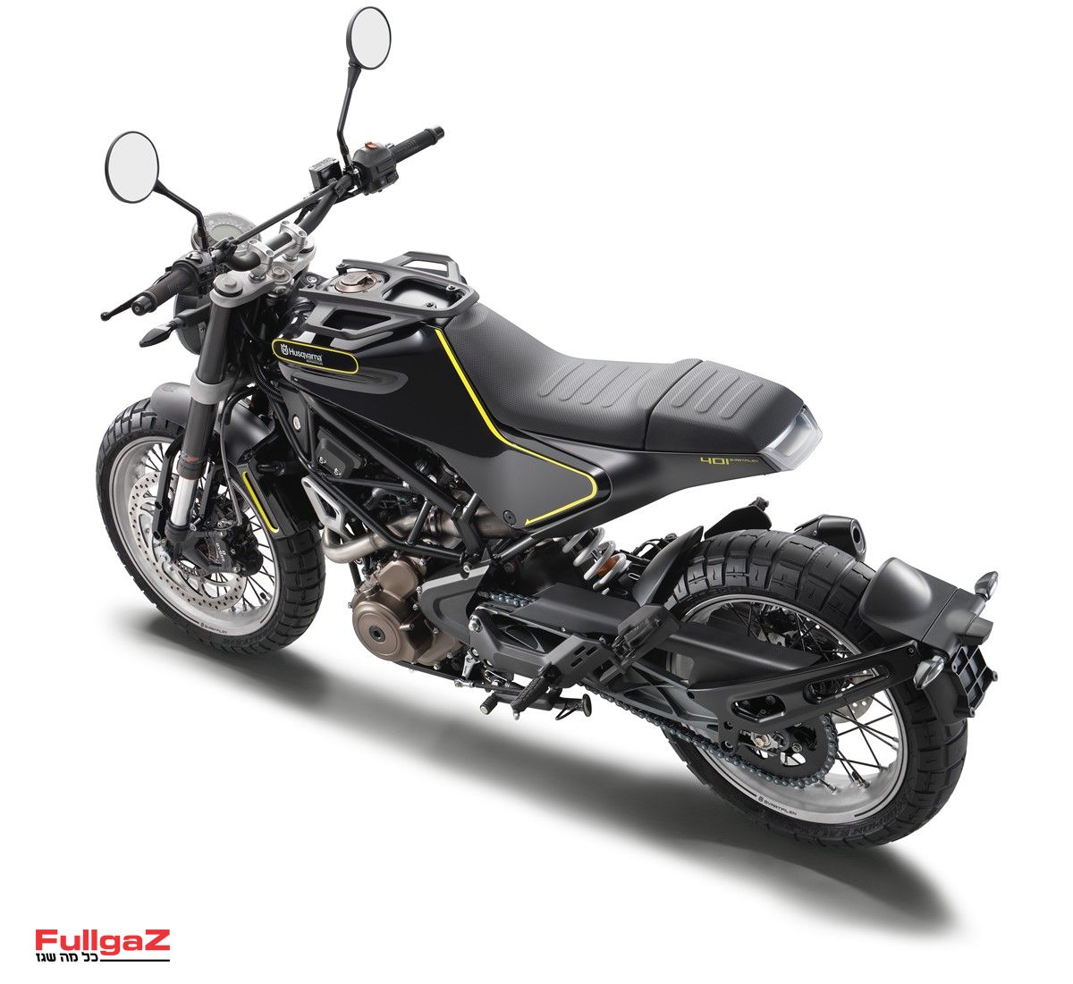 ה-SVARTPILEN 401 (חץ שחור בשוודית) לוקח את הקונספט לכיוון סקרמבלר אורבני מודרני. תנוחת הרכיבה זקופה יותר בזכות הכידון הגבוה, המושב מדורג, מערכת הפליטה מעוצבת ברוח האופנוע, יש מגני ידיים כדי להקנות אוריינטציית שטח, וגם הצמיגים תואמים – פירלי סקורפיון ראלי STR דו-שימושיים.