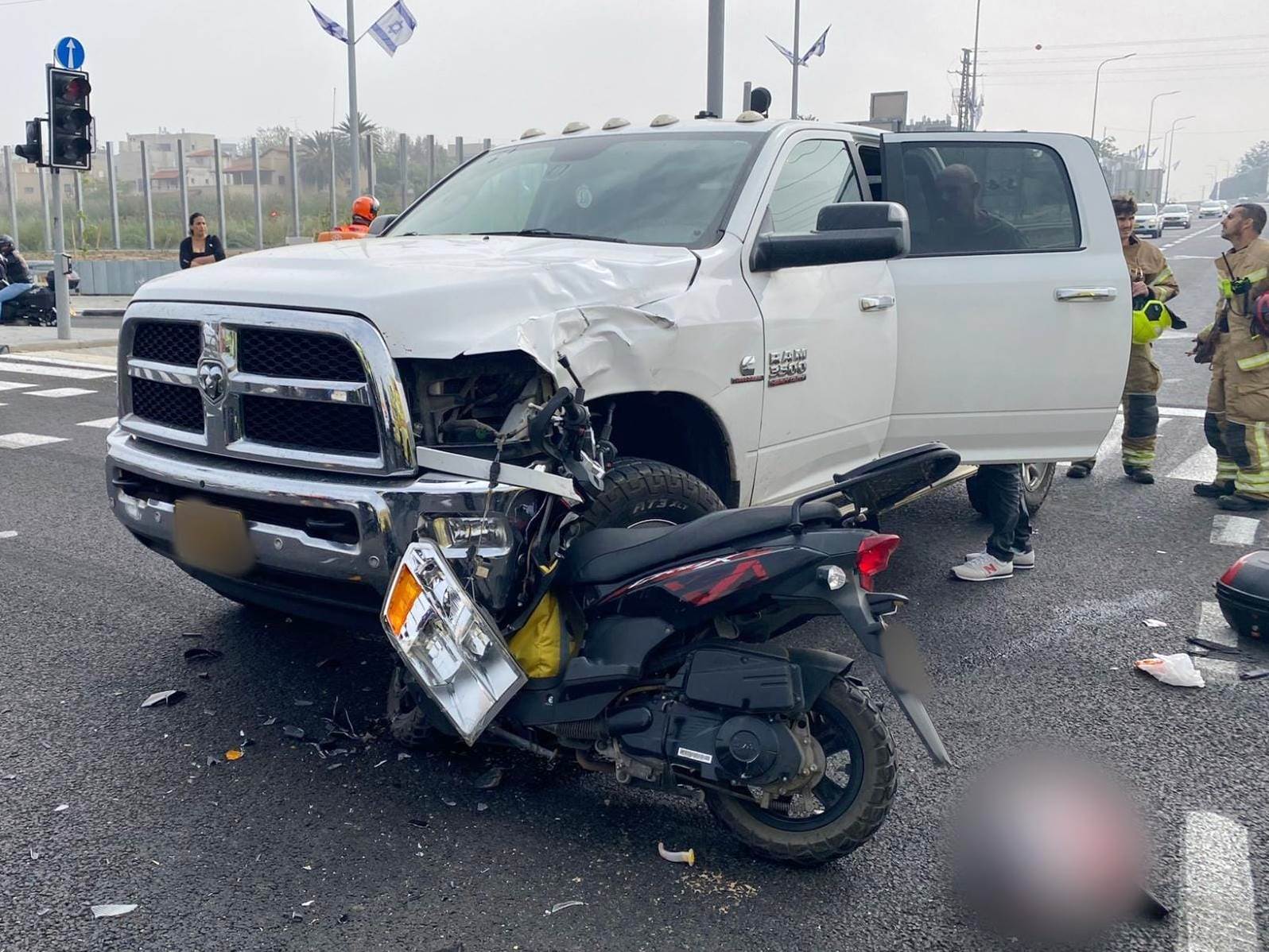 הקטנוע שעליו רכב הרוכב כן ה-20 זרוק בצד הדרך אחרי התאונה