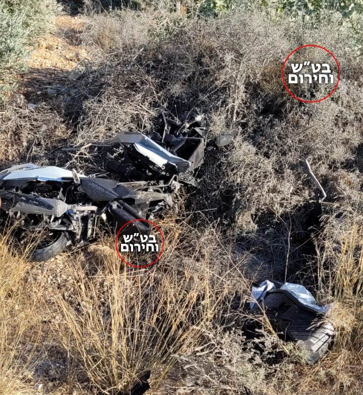 שאריות האופנוע לאחר התאונה הקשה בצומת אלמוג