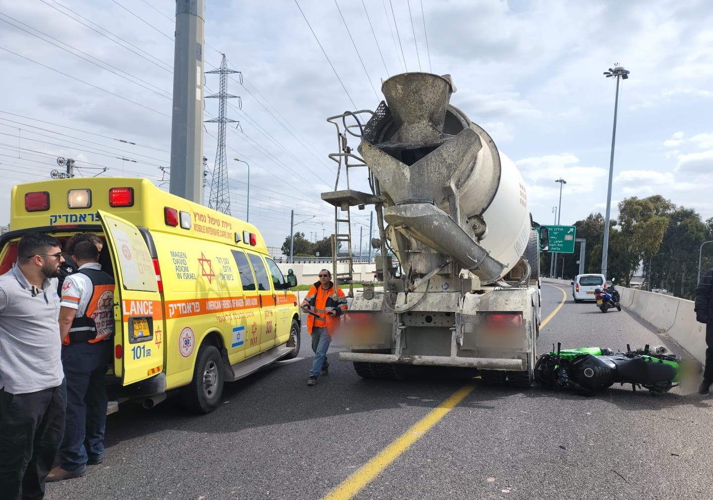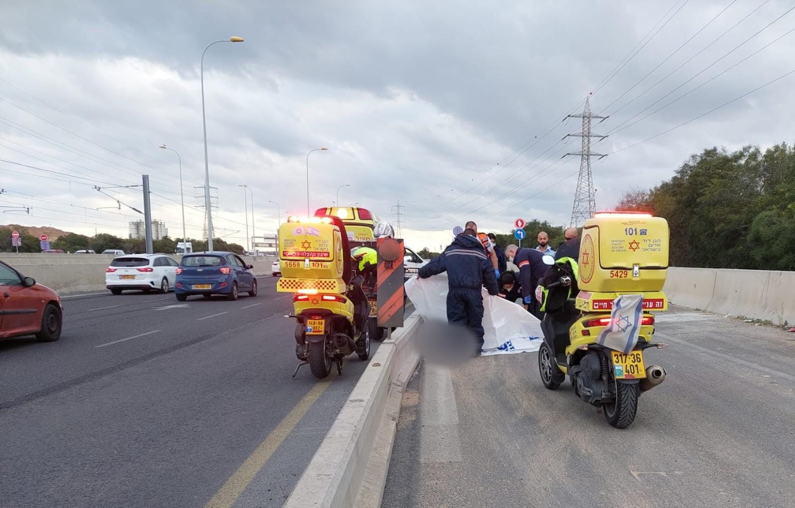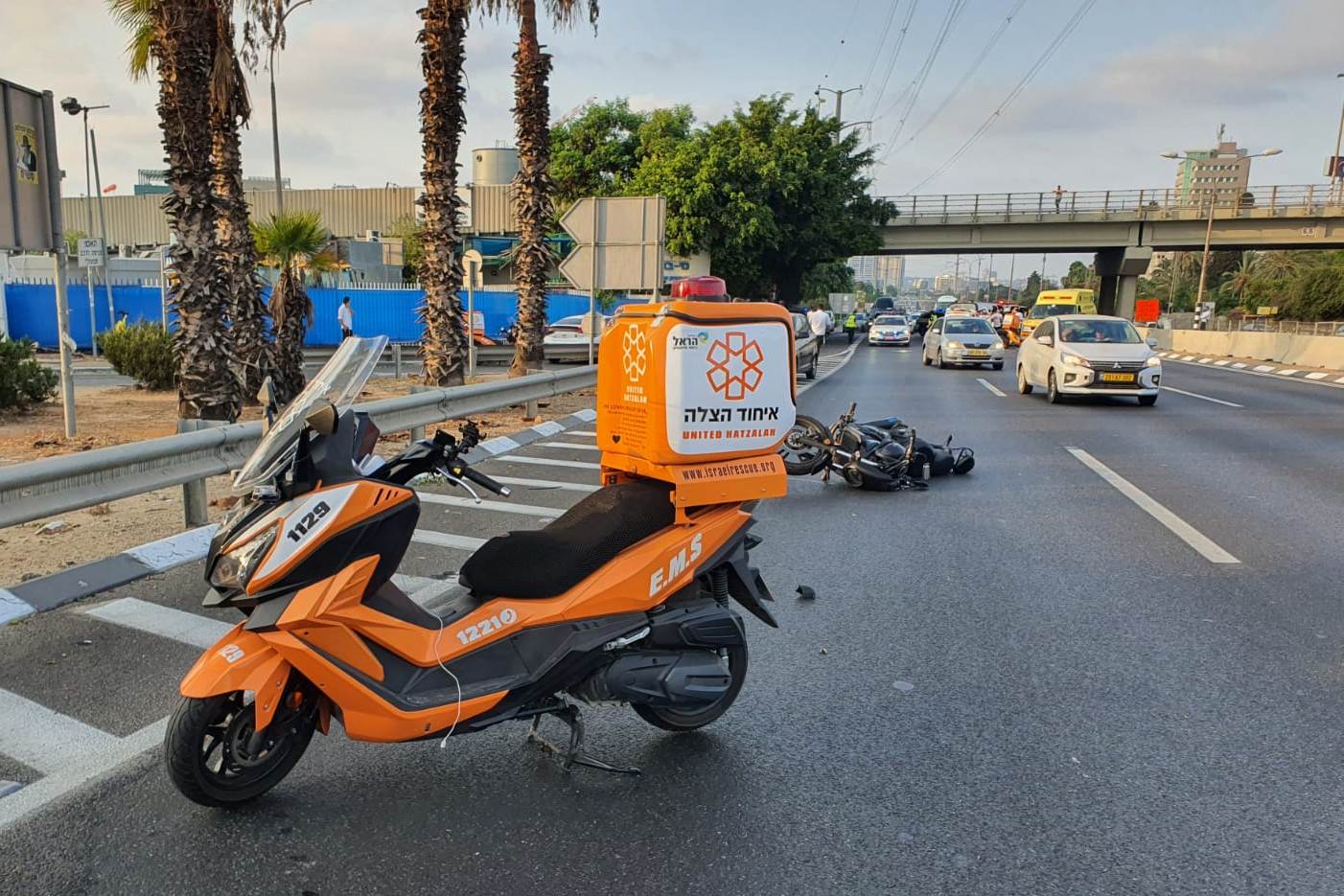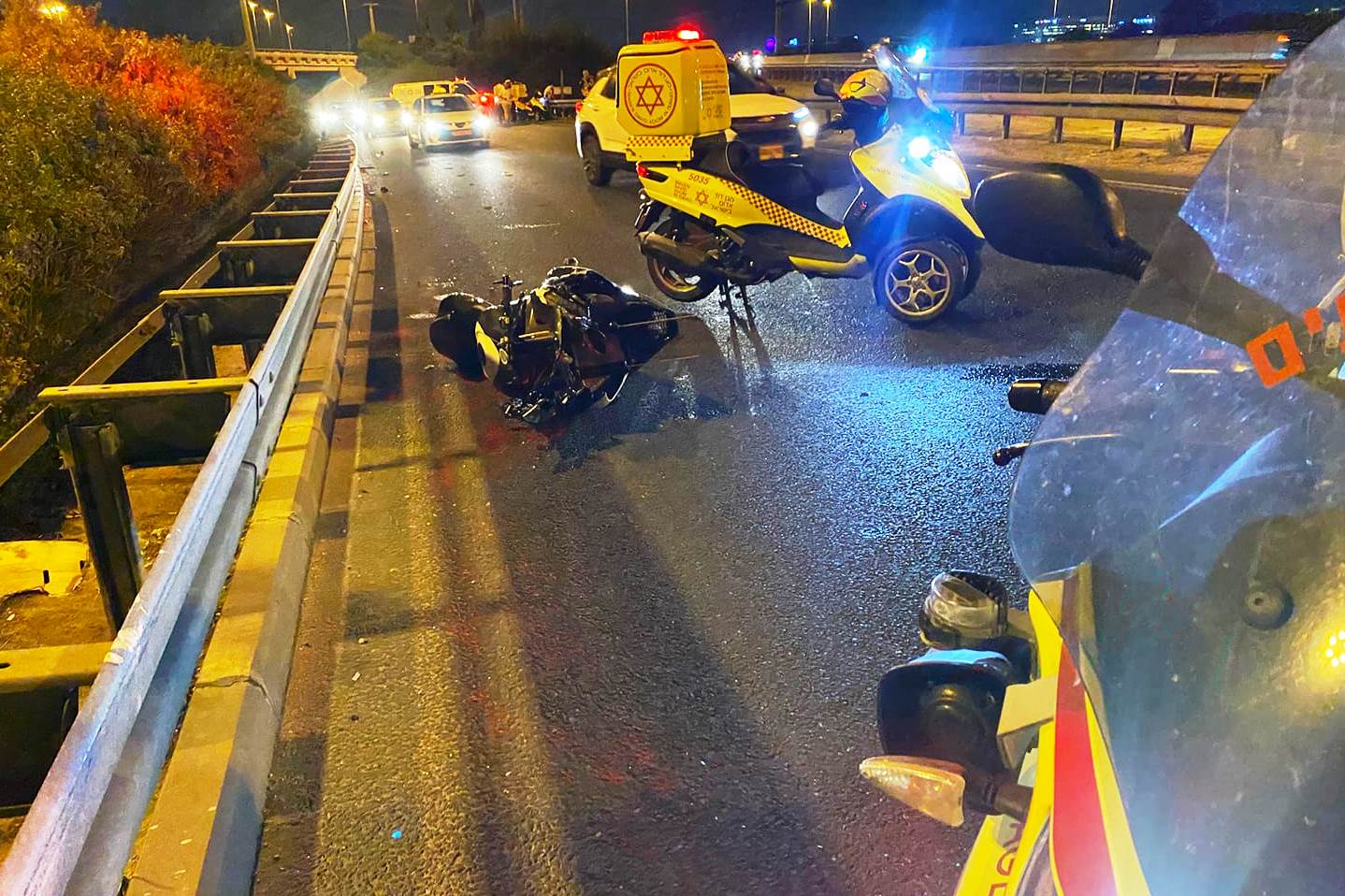 זירת התאונה בנתיבי איילון שבה נהרג הרוכב בן ה-50