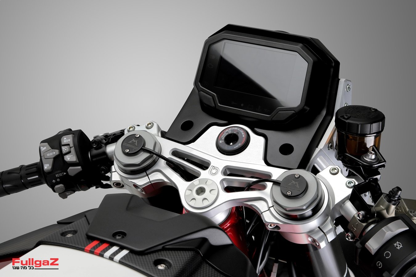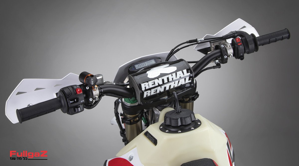 לעומת גרסת המוטוקרוס נראה כאן מיפוי פחות אגרסיבי למנוע, בולמי שוואה מעט רכים יותר עם מזלג בקוטר 49 מ"מ, התנעה חשמלית, רגלית צד, מיכל דלק גדול יותר בנפח 10.7 ל', בלמים 'עדינים' יותר, חישוק "21 מלפנים עם מהלך של 305 מ"מ, חישוק 18″ מאחור עם מהלך גלגל של 307 מ"מ, צמיגי מצלר סיקס דייז, וגיר חמישה הילוכים עם יחס העברה סופי של 51/13. יש מערכת תאורה מלאה, מגני ידים, מפלט ארו (Arrow) עם סופית מקרבון ומשקל יבש מוצהר של 110.2 ק"ג.