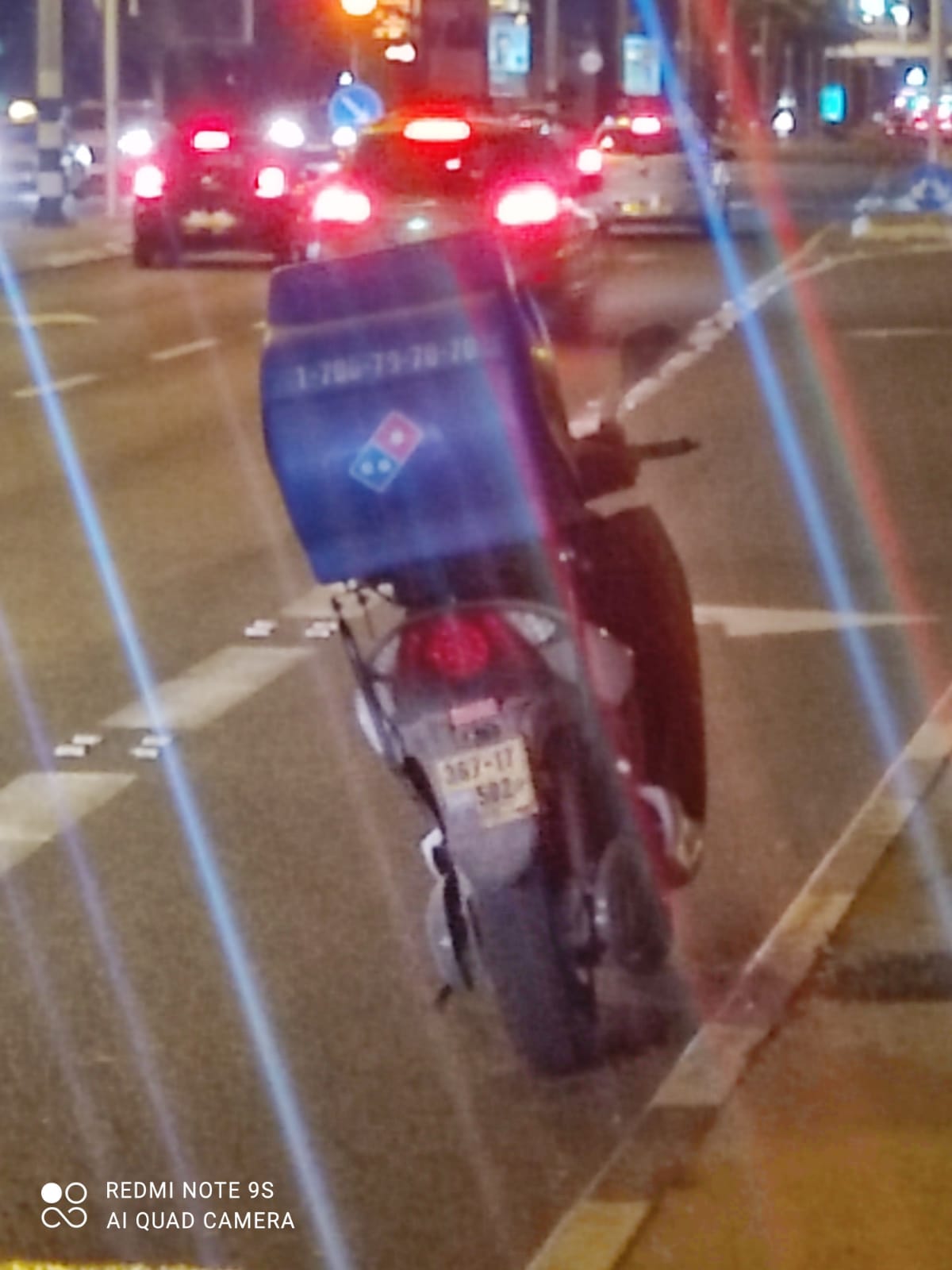 הקטנוע והלוחית כפי שצולמו על-ידי השליח בזמן קבלת הדו"חדו"ח התנועה שנרשם לשליח