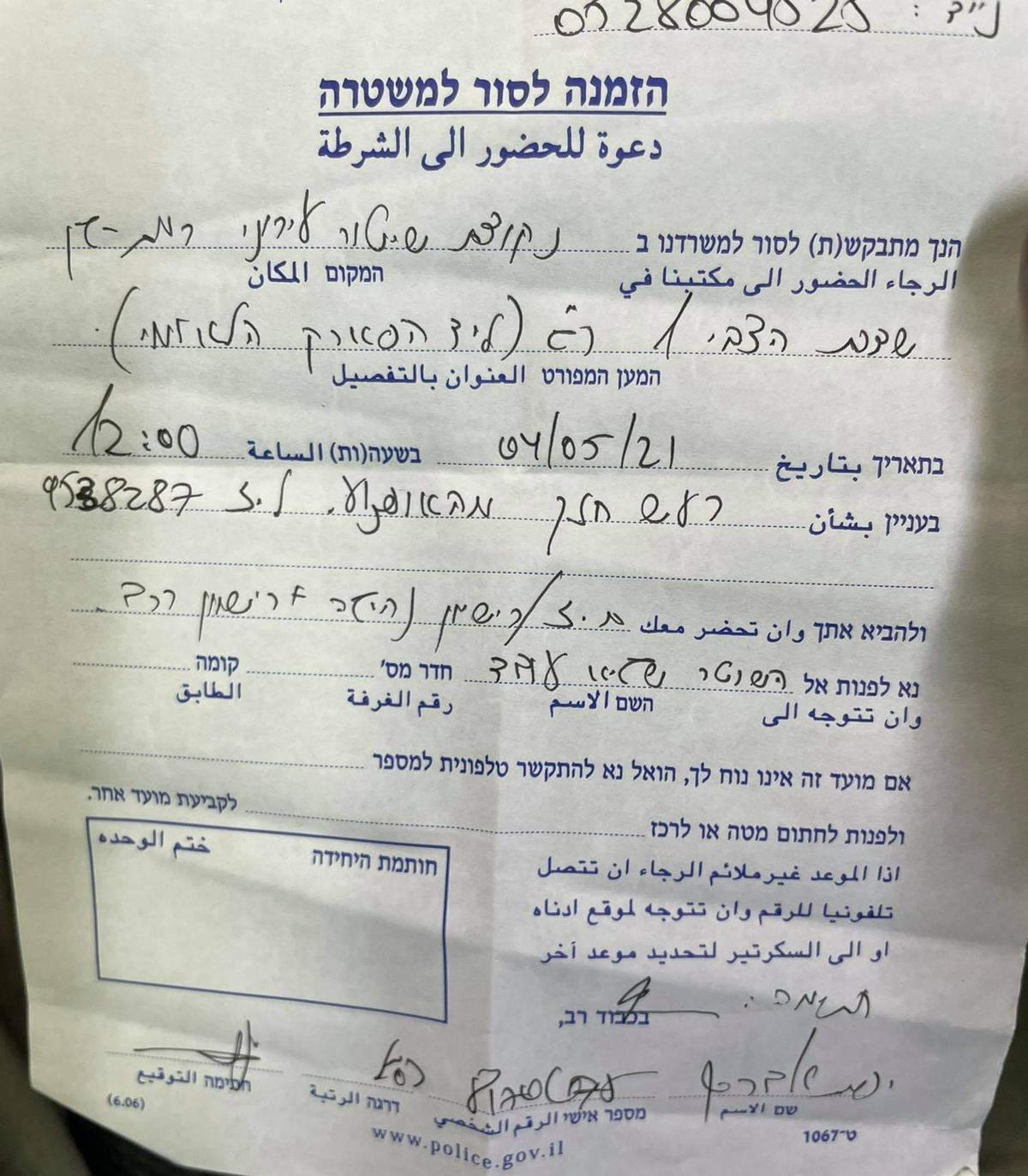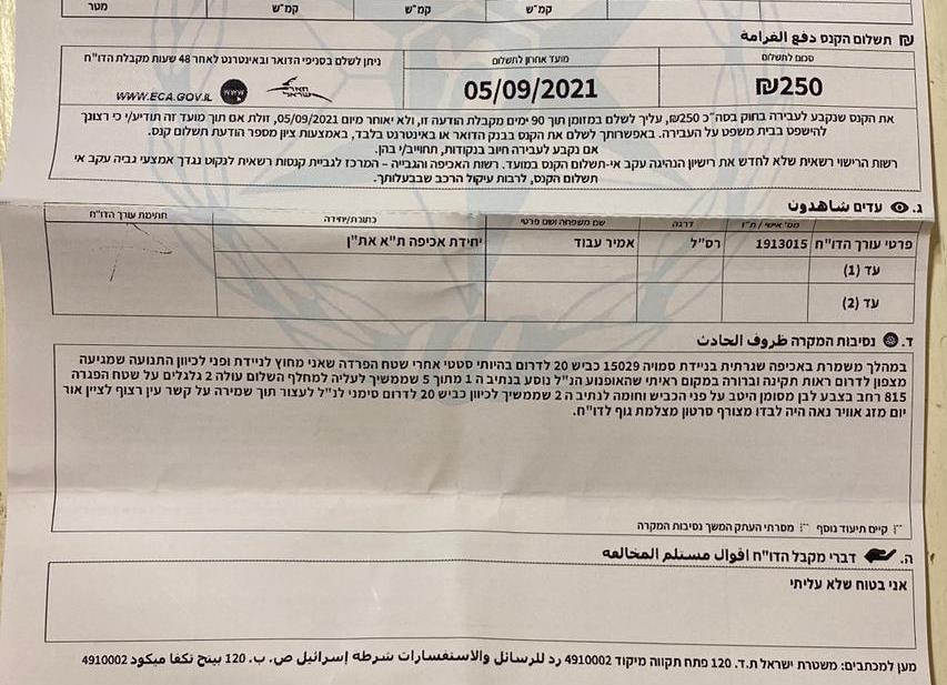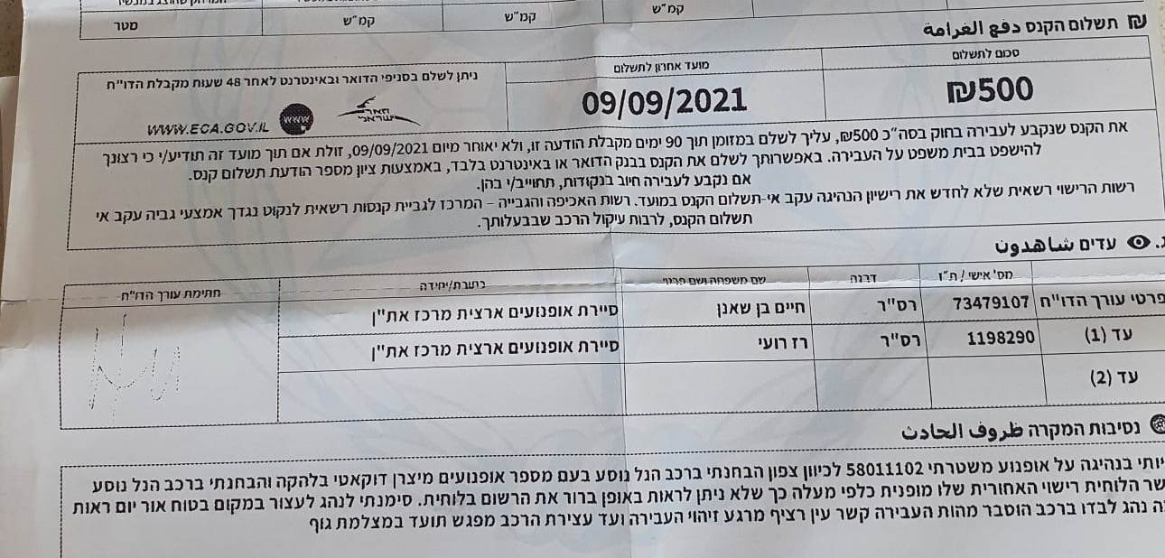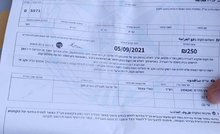 *עדכון, 20.6.21: הדו"ח בוטל על-ידי מרכז פניות הנהגים.