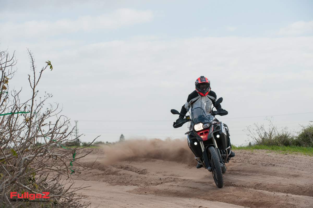 הבולמים הקשיחים יותר מצד אחד גורמים לאופנוע להיות גבוה יותר, שכן הוא שוקע פחות, אבל בד בבד גם יציב יותר, במיוחד ברכיבת כביש. זה לא שהוא קשיח מדי, והוא אפילו סופג מצוין הפרעות קטנות על הכביש, אבל הפשרה פה היא מצוינת, שכן בכבישים טכניים יותר הוא מספק את כל היציבות הנדרשת לגז.