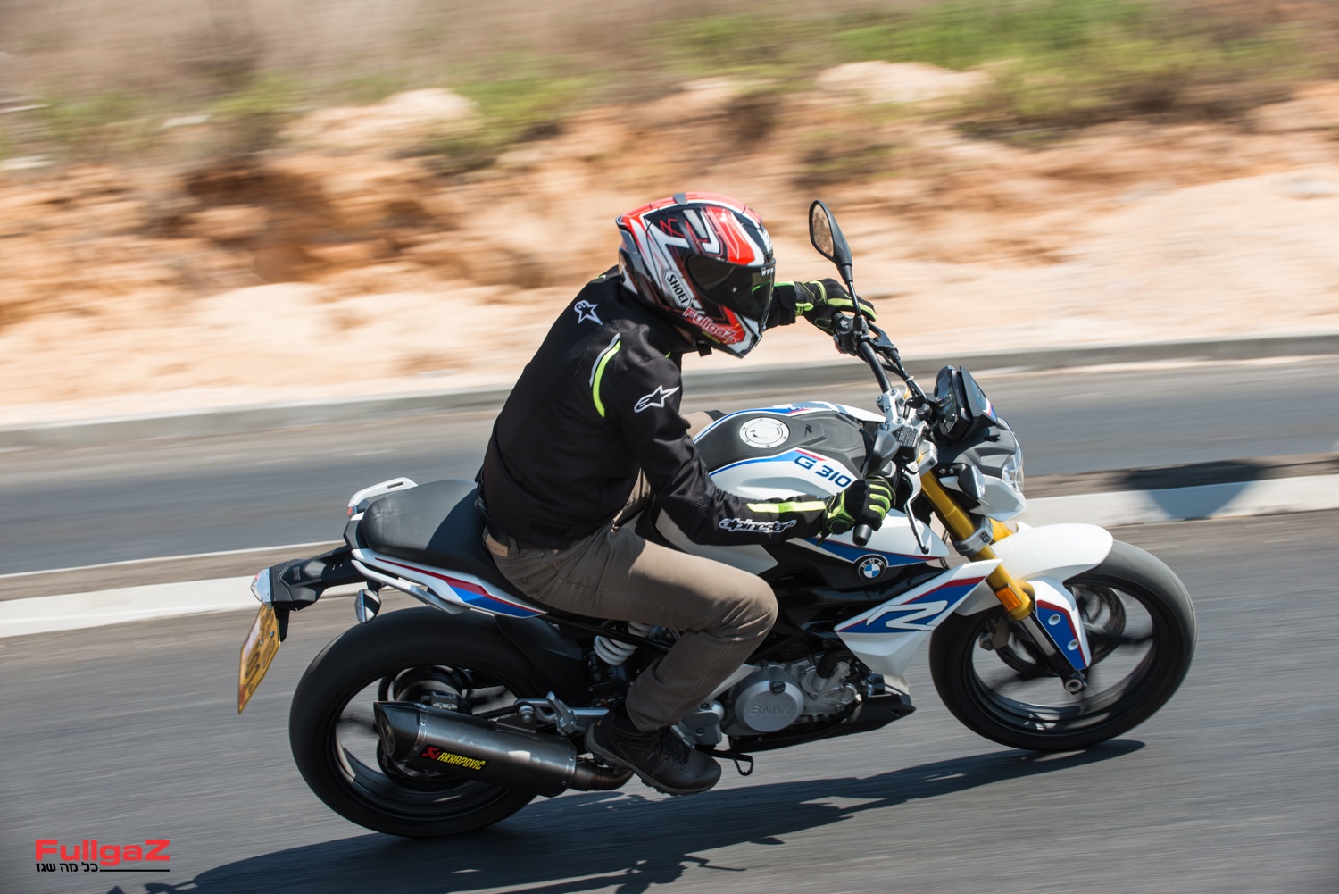 ה-G 310 R התגלה במבחן כאופנוע לא רע בכלל. המנוע, למרות שהוא סינגל, למרות הנפח הצנוע ולמרות ההספק הנמוך ביחס למתחרים, דווקא מגניב למדי. הוא מתוכנן כך שיהיה גמיש ויציע טווח שימושי רחב, והוא כן כזה. בסל"ד נמוך, למשל, יש משיכה יפה ללמעלה מלווה בפמפונים מאגזוז האקרפוביץ' שהותקן באופנוע המבחן. הכוח ליניארי מאוד, והוא ממשיך להאיץ גם אחרי שהמנוע עובר את הקו האדום ב-10,000 סל"ד. המהירות הסופית שהצלחנו לסחוט מהבימר הקטן עמדה על 160 קמ"ש, ולרגעים מסוימים ראינו על לוח השעונים גם כמה קמ"שים יותר, ובב.מ.וו כמו בב.מ.וו – הספידומטר מדויק. מדידת GPS הראתה שהסטייה במהירות הזו עומדת על 3 קמ"ש בלבד, והמהירות האמיתית עמדה על 157 קמ"ש מכובדים.