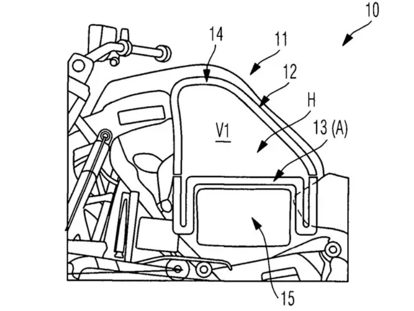 הפטנט הנוכחי מראה נפח משתנה בקיבול מיכל הדלק. חלקו התחתון מתגמש כלפי מעלה, ומטרתו – לפי ההשערות – לאפשר הכנסת סוללה נטענת במקרים שהרכיבה מתבצעת בעיר או בסביבתה. במידה והרוכב ירצה לרכוב לטווח ארוך – תחום בו לנושא ההיברידי אין יתרון – ניתן יהיה לשלוף את הסוללה ולמלא את מיכל הדלק למלוא הקיבול.