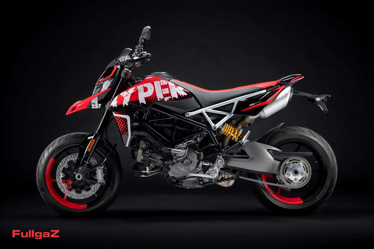 להיפרמוטארד חשיבות אסטרטגית עבור דוקאטי, שמעוניינת להראות שהיא יודעת לפתח קונספטים נוספים ולא רק מונסטרים, מולטיסטראדות וסופרבייקס. למרות תרומה שולית לגרף המכירות של דוקאטי, הם עדיין ממשיכים להשקיע ולקדם, ולתערוכת מילאנו 2025 הם מציגים את הדור החדש, הרביעי במניין – בשתי גרסאות: היפרמוטרד V2 והיפרמוטרד V2 SP. כצפוי, יש כאן את המנוע החדש שמוכר לנו מהמולטיסטרדה V2, הפניגאלה V2, הסטריטפייטר V2 ולאחרונה, גם המונסטר החדש (רגע לפני שהוא מגיע לדזרט X). הנפח הכולל של המנוע החדש על שני הצילינדרים המופרדים ב־90° עומד על 890 סמ"ק (לעומת 937 סמ"ק בדור הקודם), והוא טכנולוגי מאוד: יש מערכת תזמון שסתומים משתנה לשסתומי היניקה (IVT ר"ת – Intake Variable Timing), כשהדחיפים (Finger Followers) מצופים ב־DLC להפחתת החיכוך. השסתומים חלולים להפחתת משקל, והנעת השסתומים היא לא מסוג דזמו אלא עם קפיצים קונבנציונליים. הבוכנות קלות משקל, והצילינדרים בתצורת שרוולים רטובים – שיטה שכבר ראינו בדוקאטי בדגמי פניגאלה, והיא אינה אופיינית למנועי אופנועים. ההספק עומד על 120 כ"ס ב־10,750 סל"ד, והמומנט על 9.58 קג"מ ב־8,250 סל"ד. יחסי ההעברה קוצרו לעומת הדור הקודם, לטובת תגובה מהירה יותר למצערת.