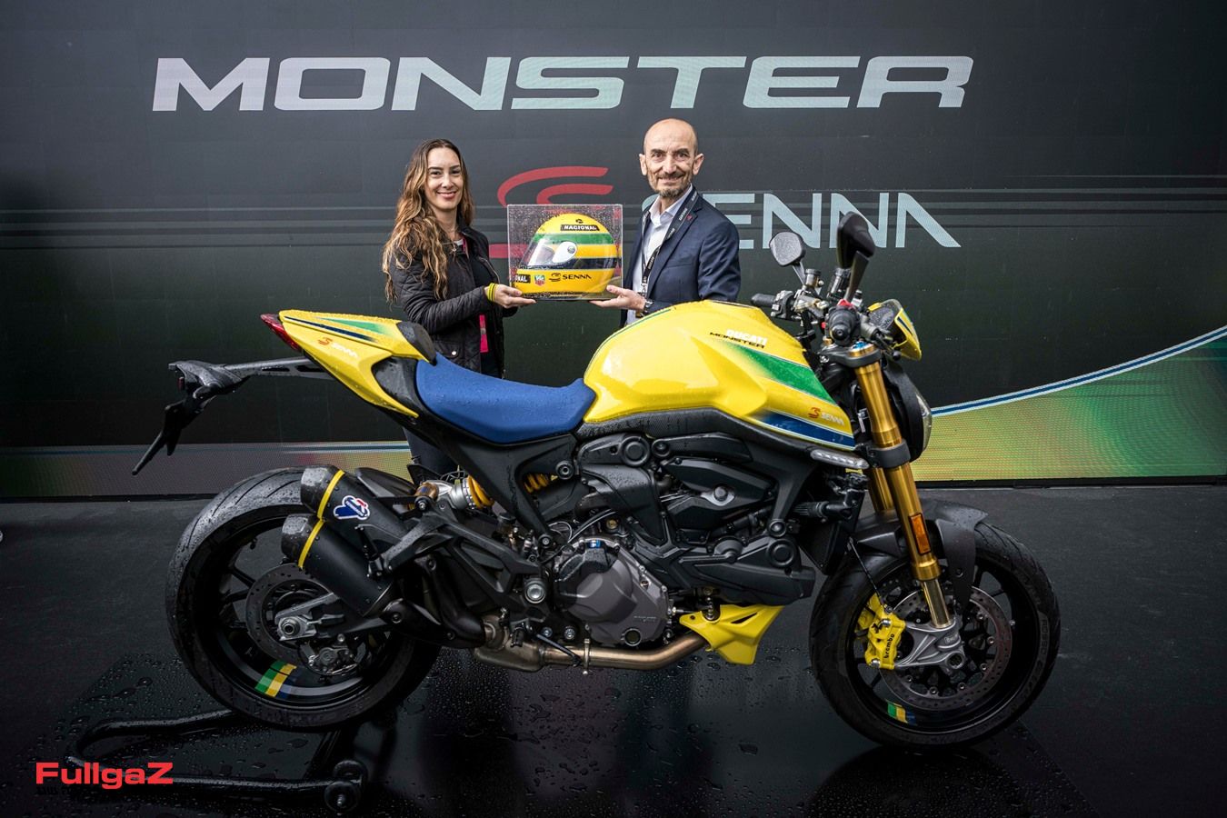 כעת, לציון 30 שנים למותו הטראגי ועשר שנים לאחר שהציגו גרסת 20 מיוחדת על-בסיס הפניגאלה 1199S, מציגים בדוקאטי את המונסטר סנה, שלוקח את המונסטר SP וצובע אותו בצבעי ברזיל שיוצגו על קסדתו המפורסמת, כולל המושב הכחול. בנוסף יש לוחית ממוספרת לציון המספר הסידורי של האופנוע, כיתובי 'Senna' אדומים וכיתוב על מיכל הדלק של האמרה המשויכת לסנה: 'Racing Is In My Blood'.