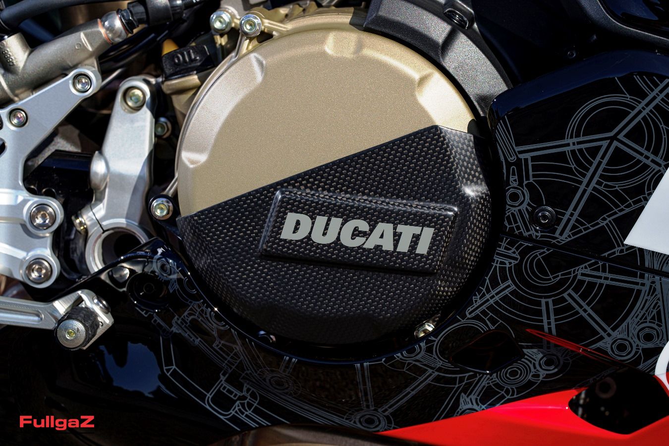 מנוע נושא העומס – הדזמוסדיצ'י סטראדלה V4 – הותאם כמובן לתקנות יורו 5+ הנדרשות. בו מגביל הסל"ד מופעל ב־16,500 סל"ד בהילוך הגבוה וב־16,000 בשאר ההילוכים. המנוע בתצורתו הבסיסית מגיע להספק של 218 כ"ס ב־15,750 סל"ד ו־11.7 קג"מ ב־12,000 סל"ד. מספרים דומים למדי לדור הקודם, רק שפה בדוקאטי הרכיבו בוכנות חדשות וקלות יותר ב־5% במשקלן, גל הארכובה שופר, מיקום מזרקי הדלק שונה ובוצעו עוד אי־אילו שיפורים לרכיבים הקיימים לטובת עמידות ואמינות, כמו גם למומנט גבוה יותר ויותר כוח בסל"ד נמוך.